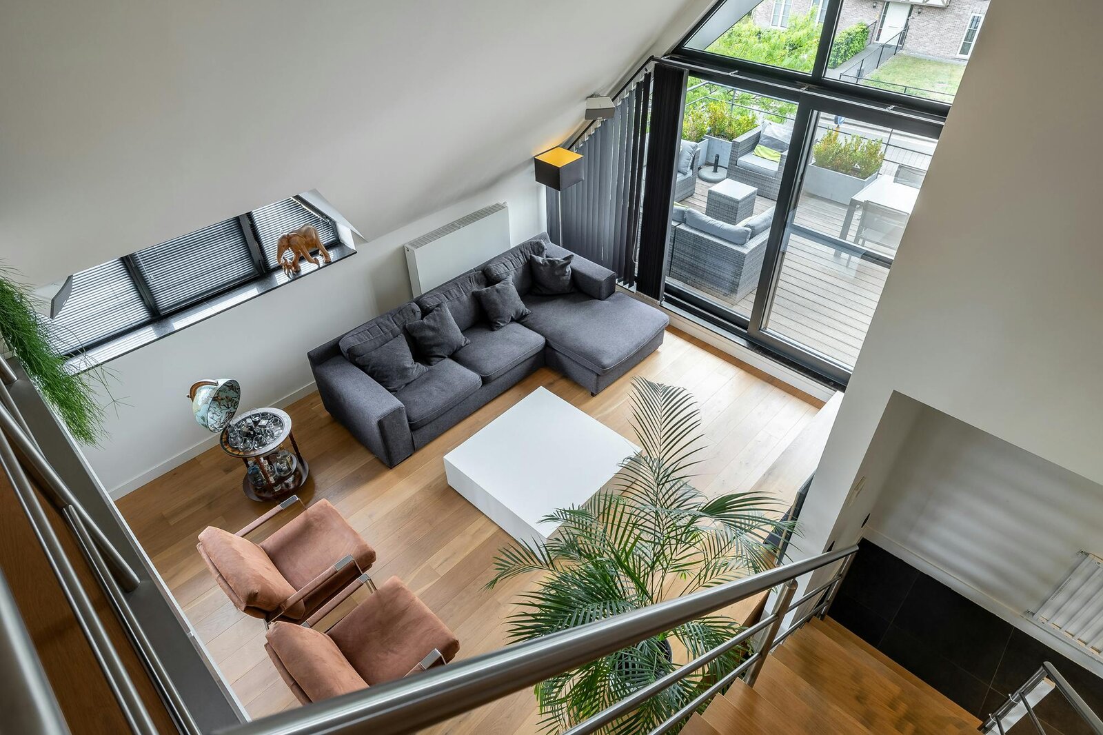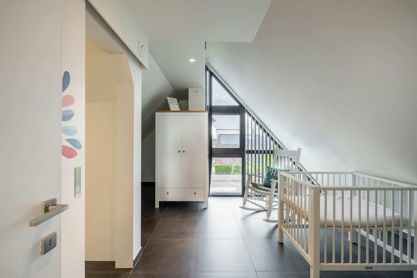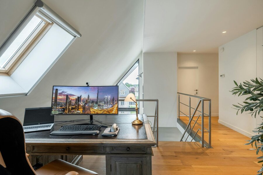 Large windows to both east and west provide access to 2 terraces and, thanks to a window strip to the south, you can enjoy a beautiful play of light in the sunshine. In the sun, it always shines on 1 of the 2 terraces.
