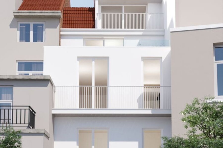 - Triplex flat (-1/0/1) of +- 190m2 composed of beautiful reception rooms with an open-plan kitchen, three bedrooms, two shower rooms as well as a small terrace of 6m2 and a city garden of 30m2.