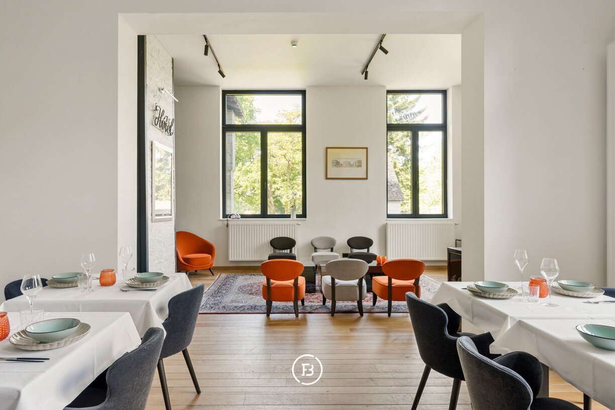 Op het gelijkvloers bevinden zich een inkom met receptie, salon, eetruimte/restaurant,