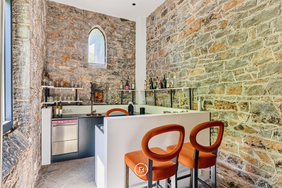 designkeuken, conferentiezaal en bar in de voormalige kapel. Op de benedenverdieping