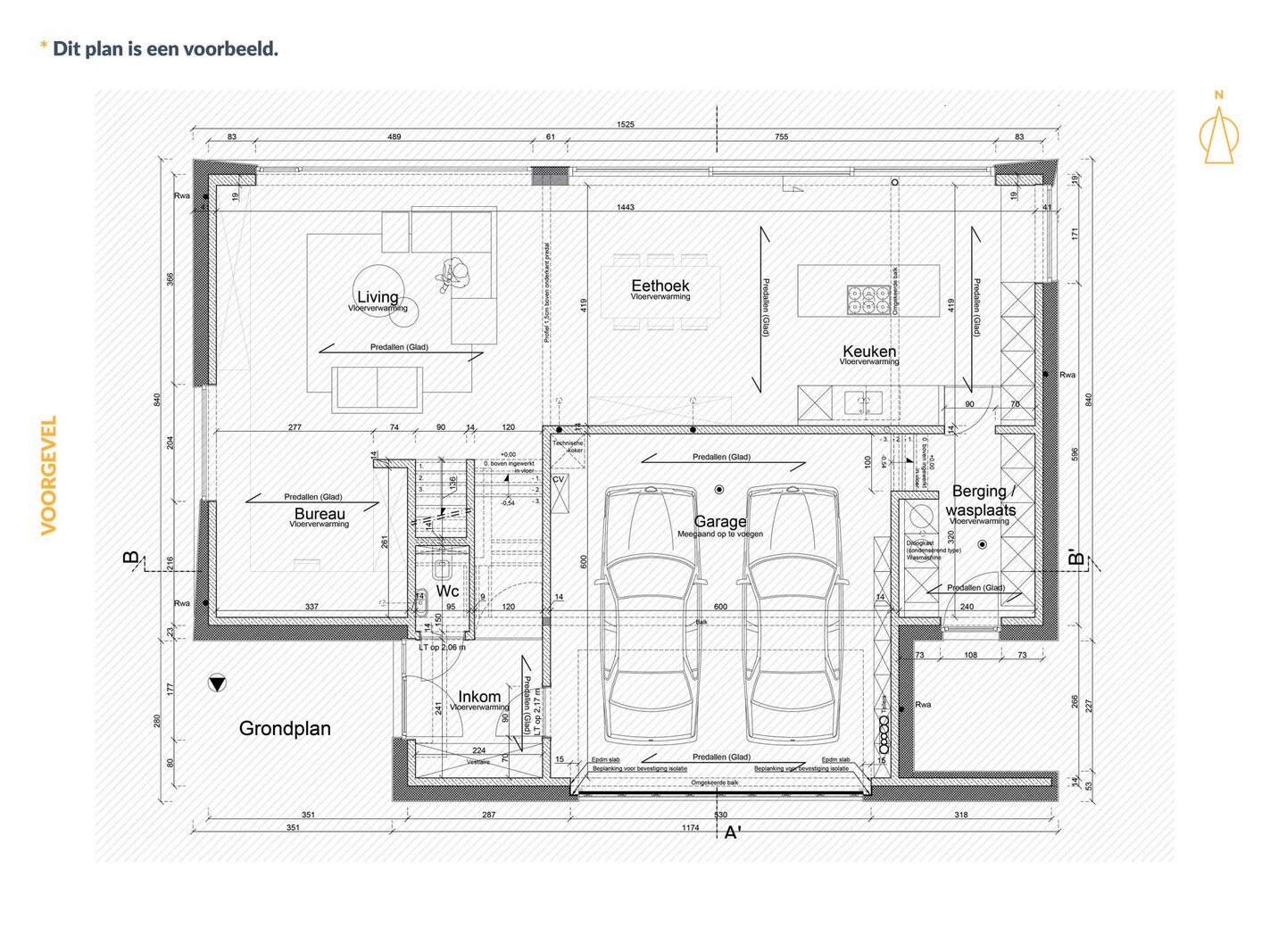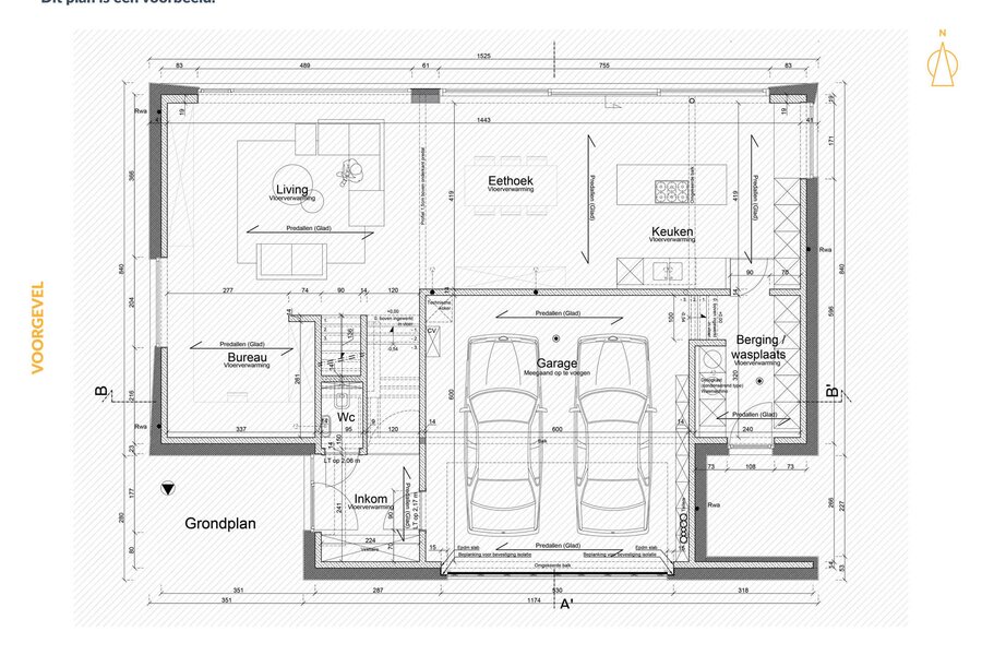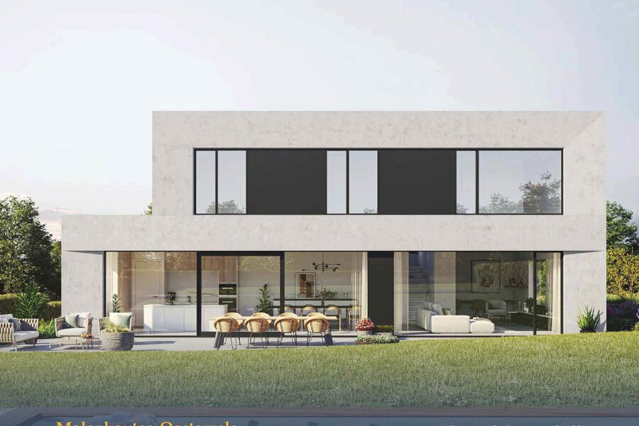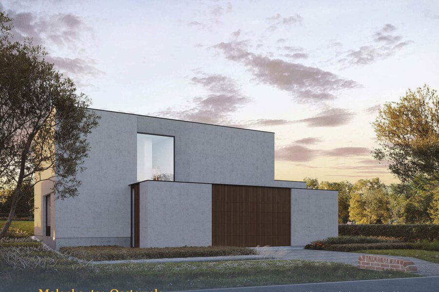 De voorgestelde woning is een voorbeeld van wat mogelijk is op dit perceel en heeft een bewoonbare oppervlakte van 200 m². Je geniet van een doordacht ontwerp met grote raampartijen, veel lichtinval en een comfortabele indeling over twee verdiepingen. Op het gelijkvloers vind je een open keuken, eetruimte, gezellige zithoek, ruime bureau, praktische berging/wasplaats, apart gastentoilet en een inpandige garage met plaats voor twee wagens.