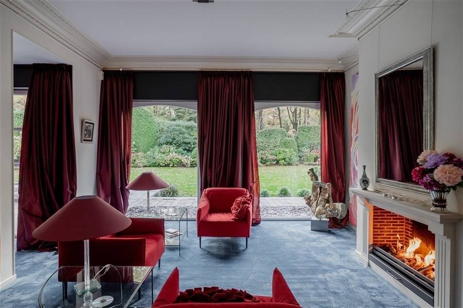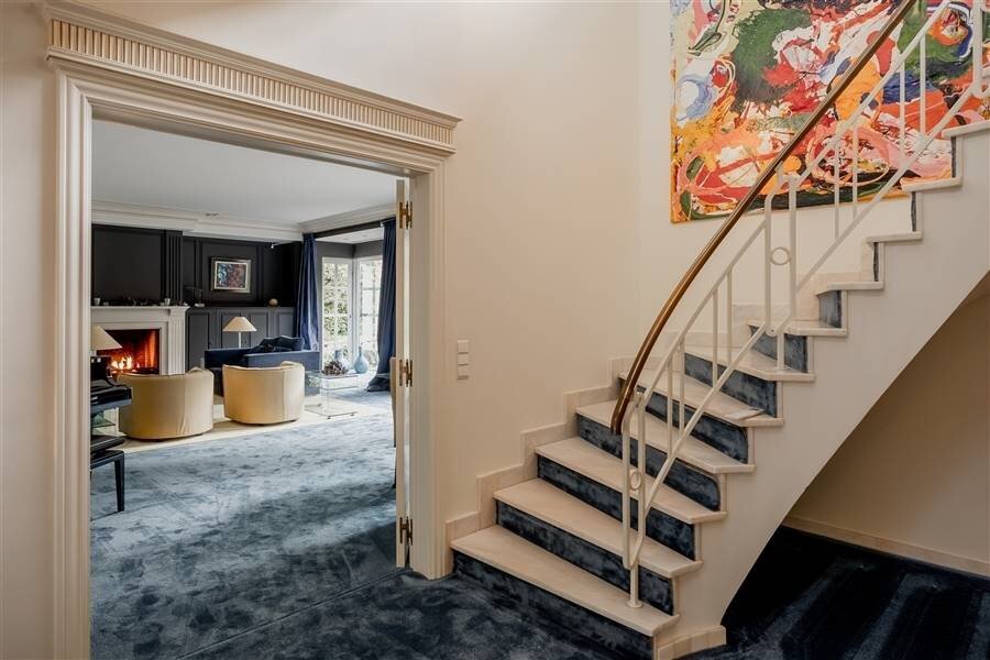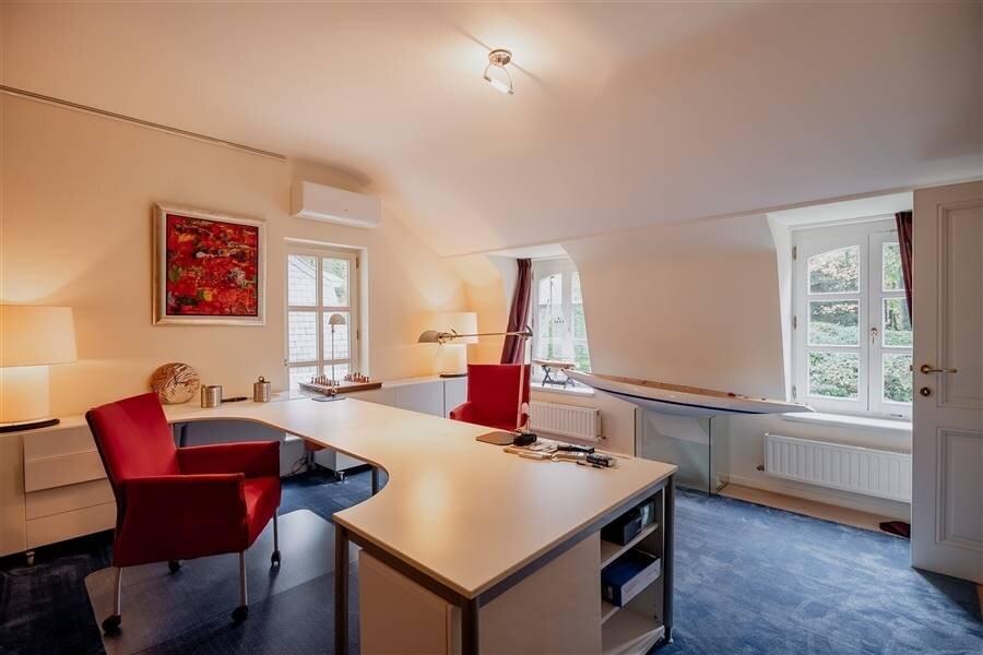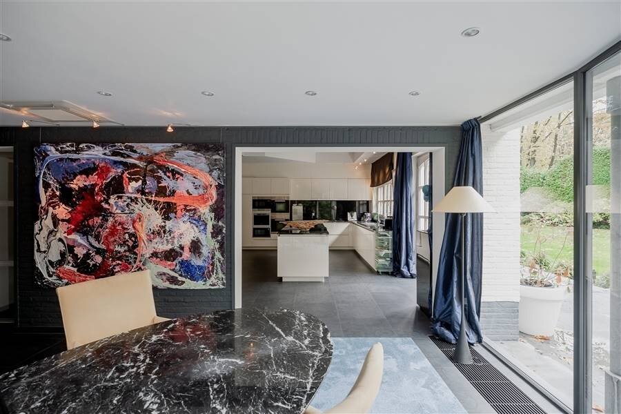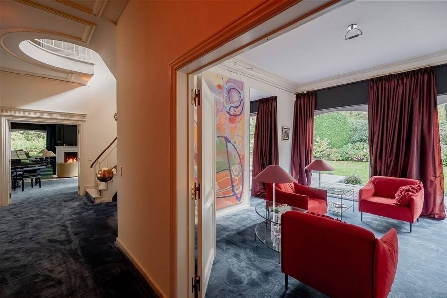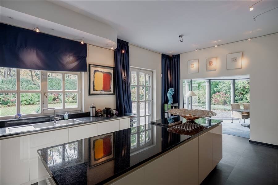 Residential and discretely located spacious villa in Kapellenbos including several living and work spaces, 5 bedrooms each with a dressing room, 3 bathrooms, indoor garage for 2 cars and equipped with an elevator. Surrounded by a beautifully landscaped and perfectly maintained southwest facing garden that enjoys plenty of sunshine and complete privacy.