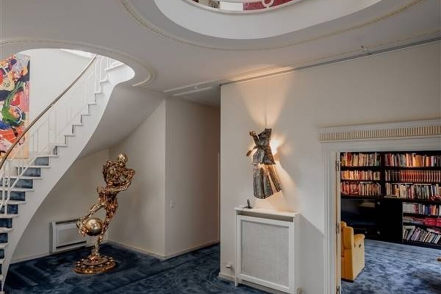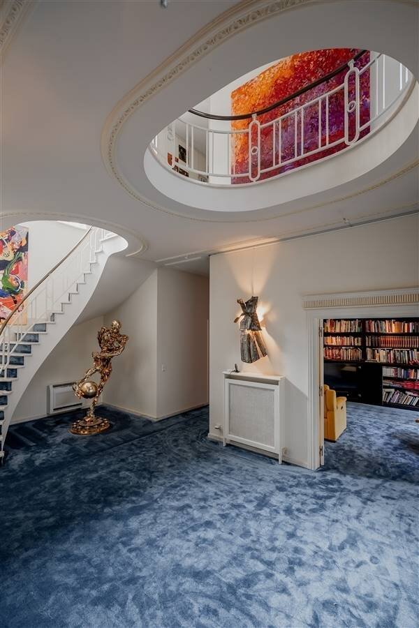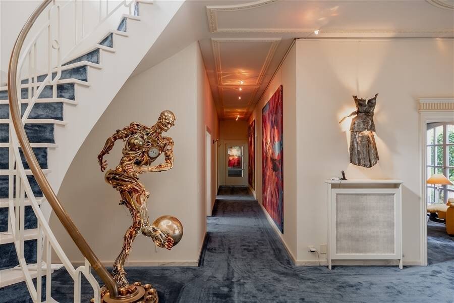Spacious entrance hall with mezzanine, checkroom and guest toilet. Through the entrance hall access to the separate office space with fitted wardrobes.