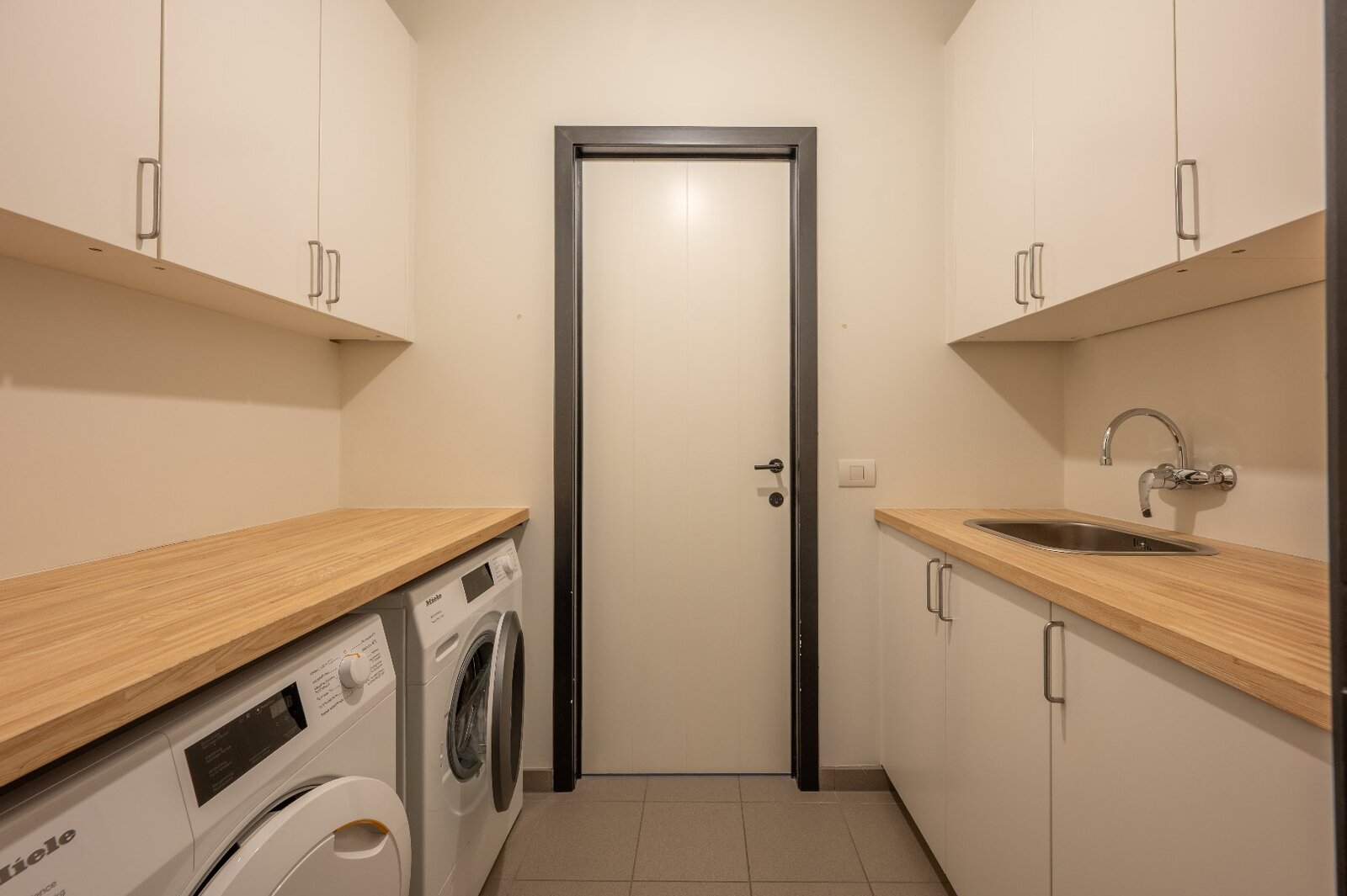 Op het verdiep: Master bedroom met ingemaakte kasten, ruime luxueuze badkamer, 2e en 3e slaapkamer telkens voorzien van ingemaakte kasten, 4e kamer die momenteel is ingericht als bureau.