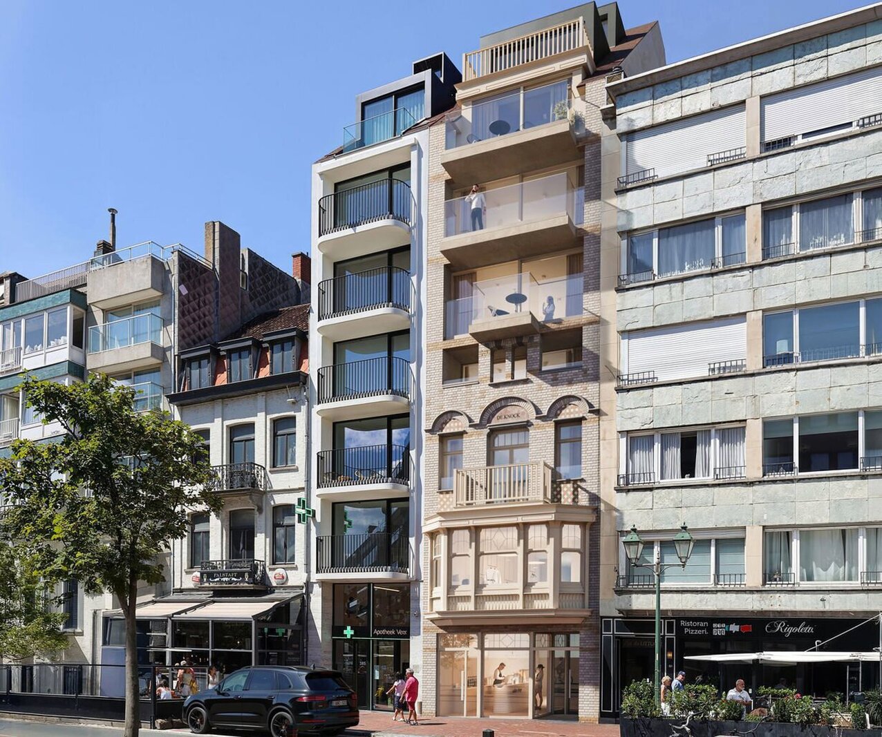 Met trots stellen we u voor: de unieke residentie “De Knock”, een prachtig project dat het beste van oud en nieuw verenigt. De authentieke, rustieke gevel van dit iconisch gebouw blijft behouden en vormt de elegante basis voor een stijlvolle bovenbouw met hedendaagse luxe. Deze residentie is gelegen in een van de meest commerciele winkelstraat van Knokke zijnde de Lippenslaan met zijdelings zeezicht en een open zicht op de Kustlaan.