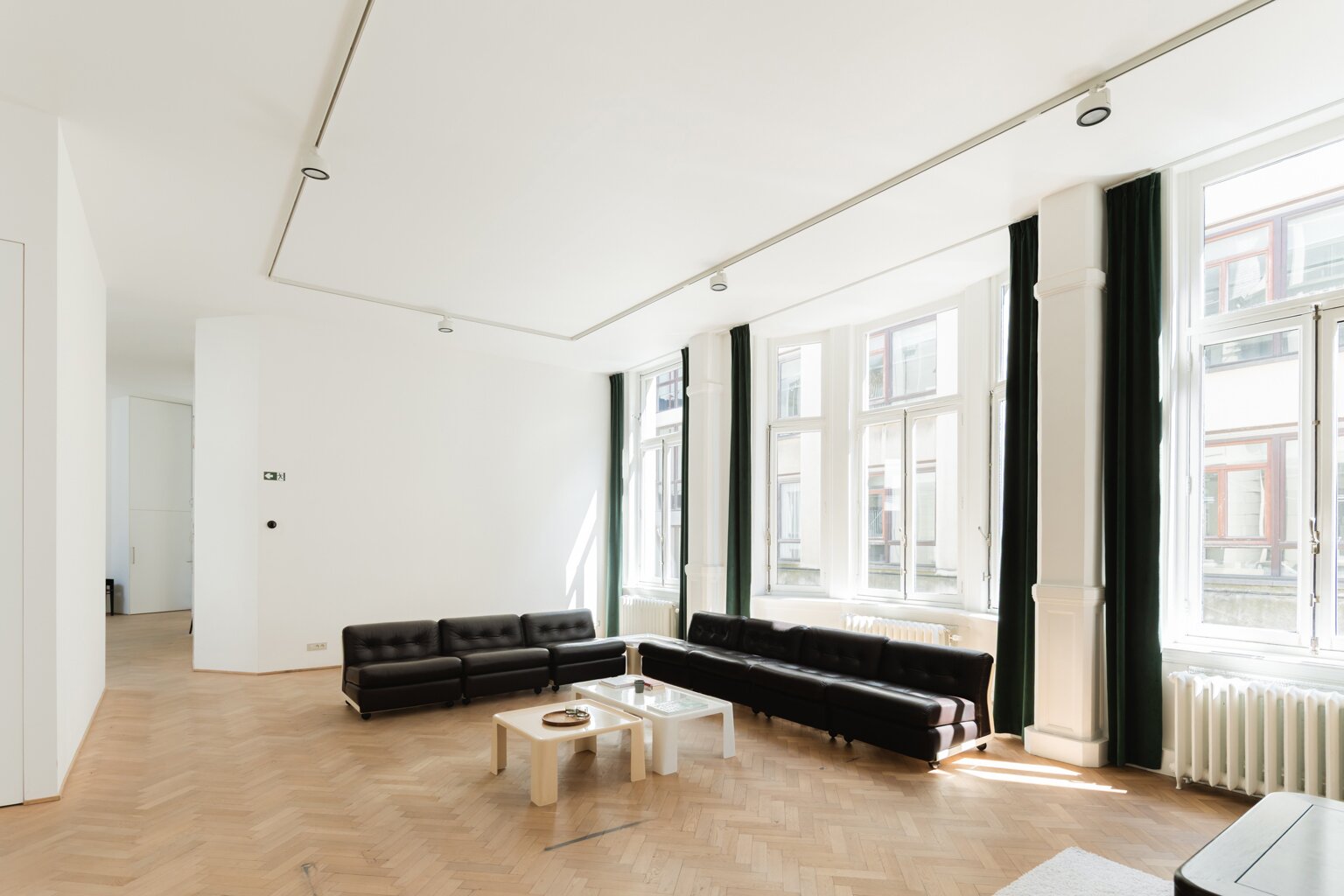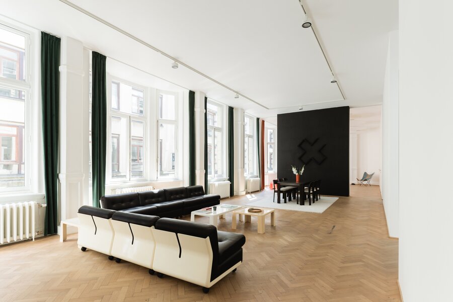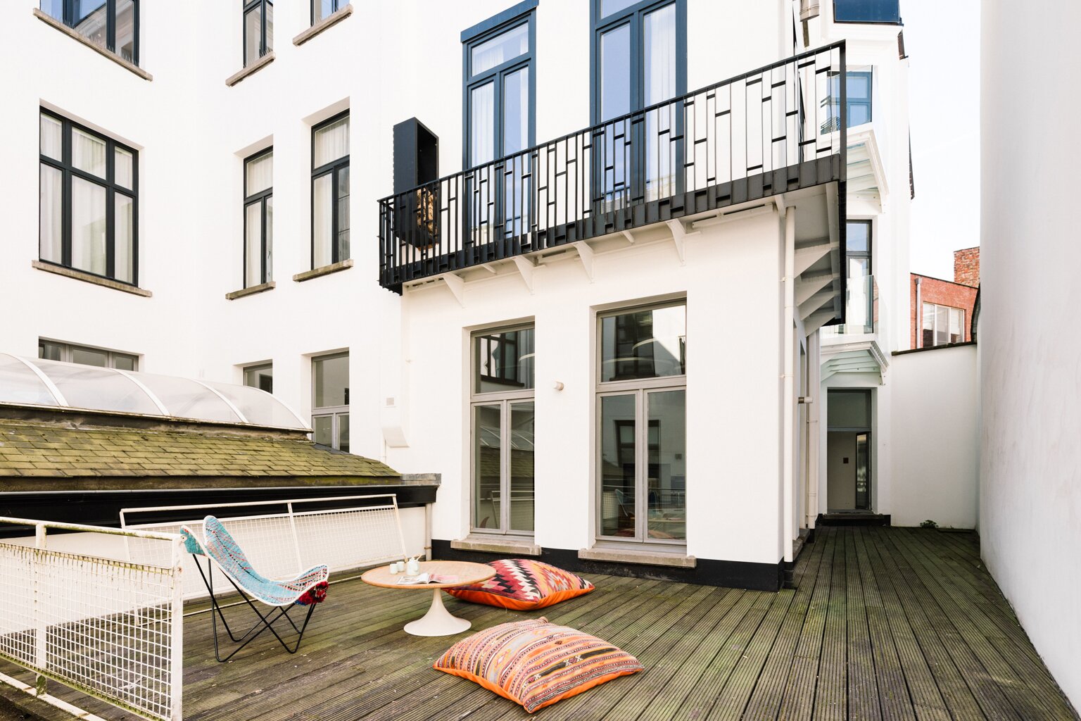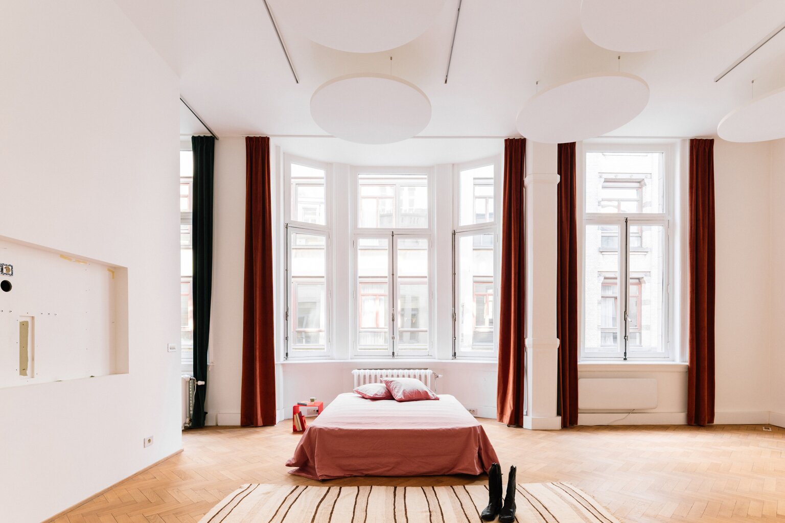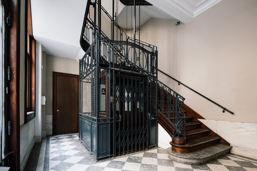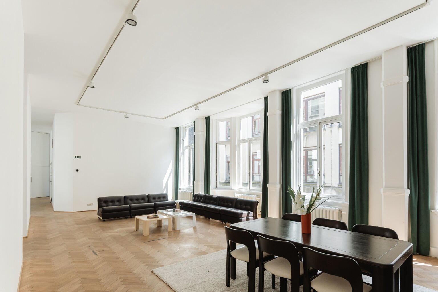 Former historic warehouse in beaux-arts style, designed in 1926 by architect Jan De Vroey, commissioned by the Compagnie Continentale d'Importation. Today, you will find one gigantic spacious flat on each floor (only three in total). The entrance hall with its impressive lift has only just been fully restored - as if you were stepping into the set of a classic French film.