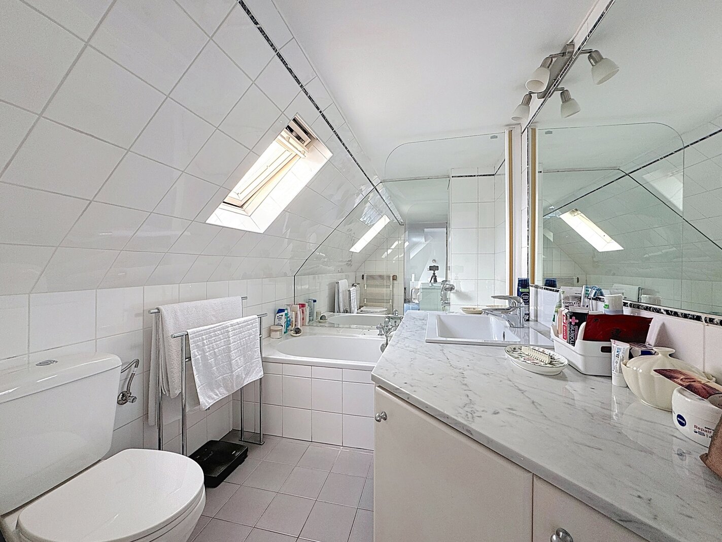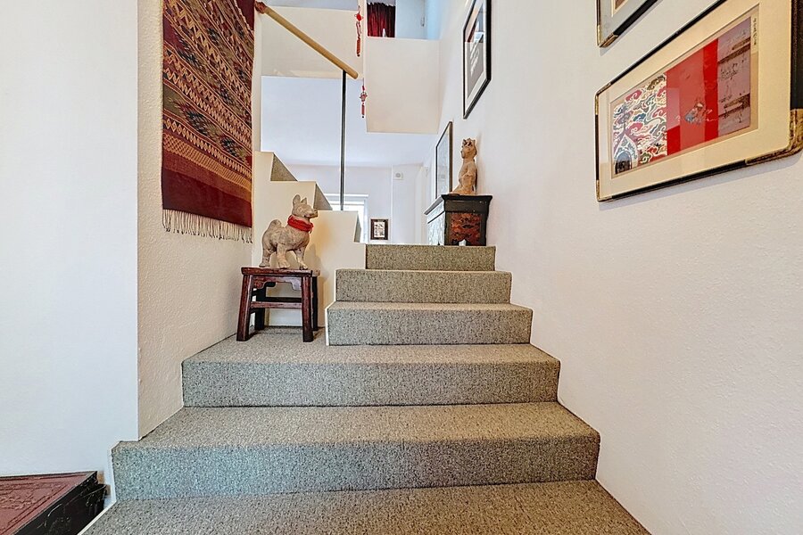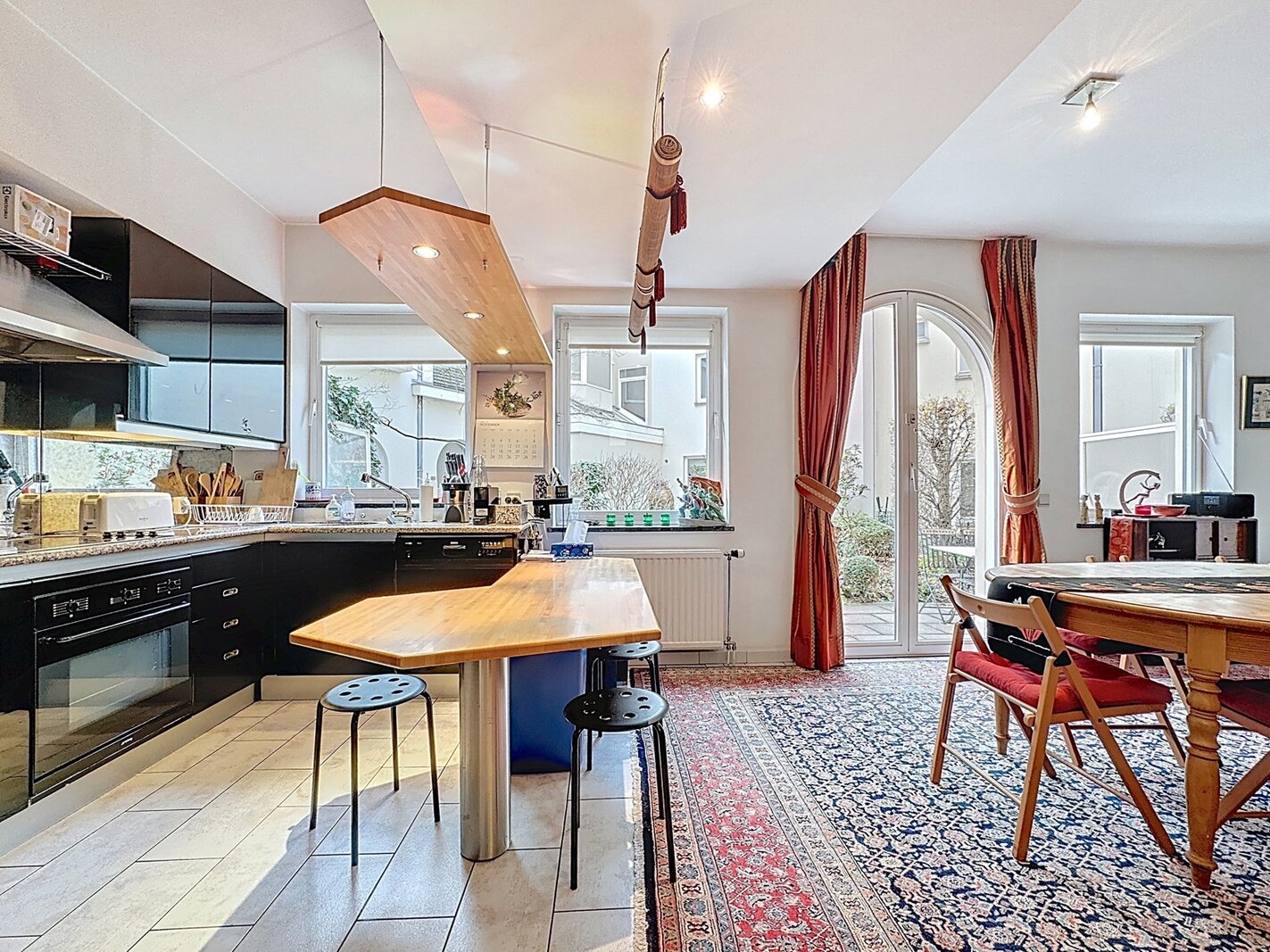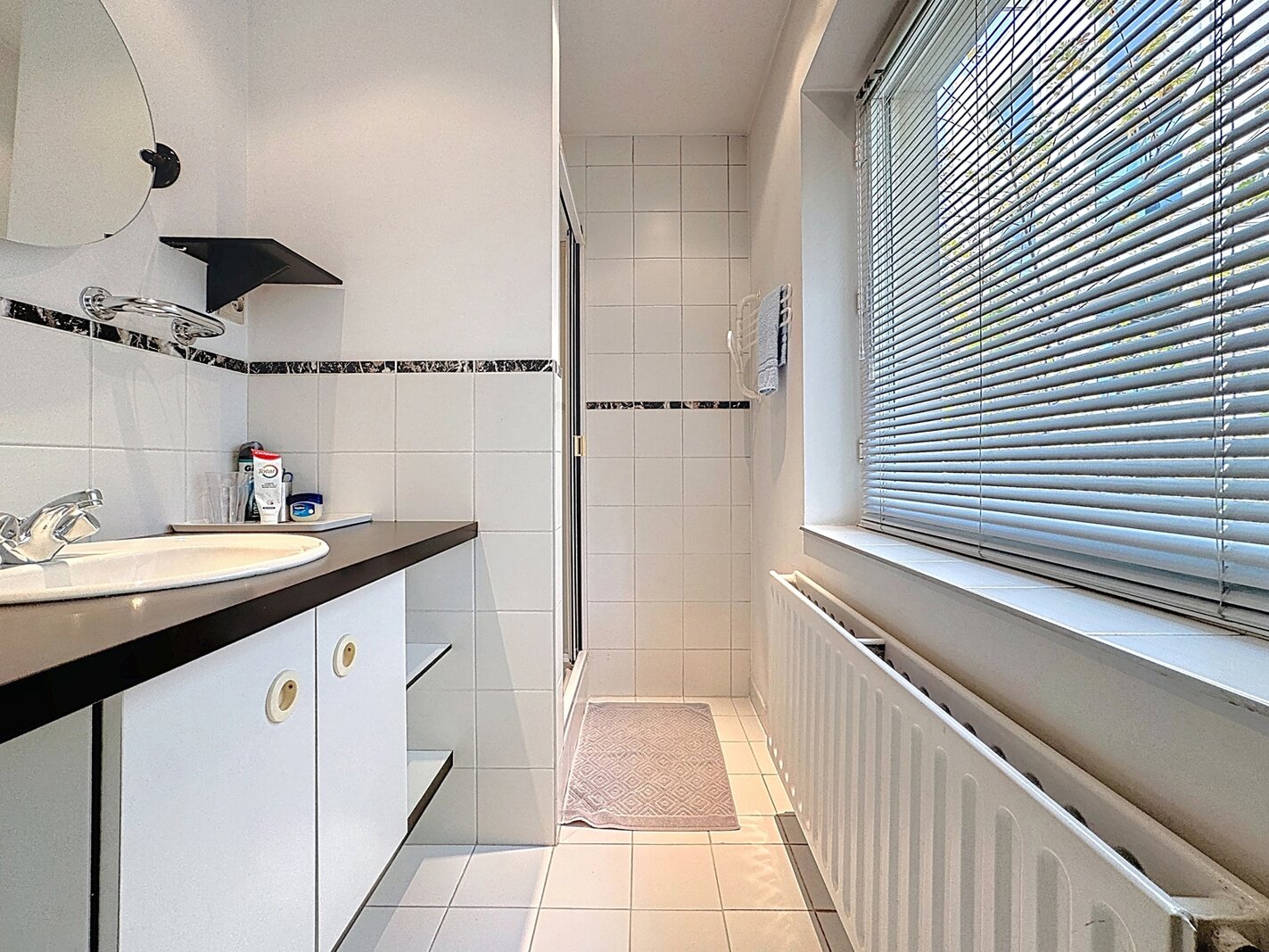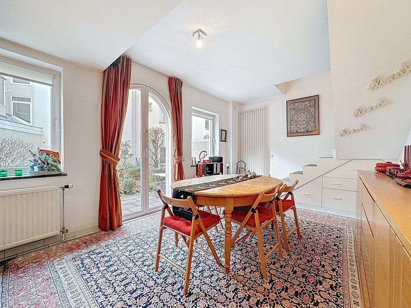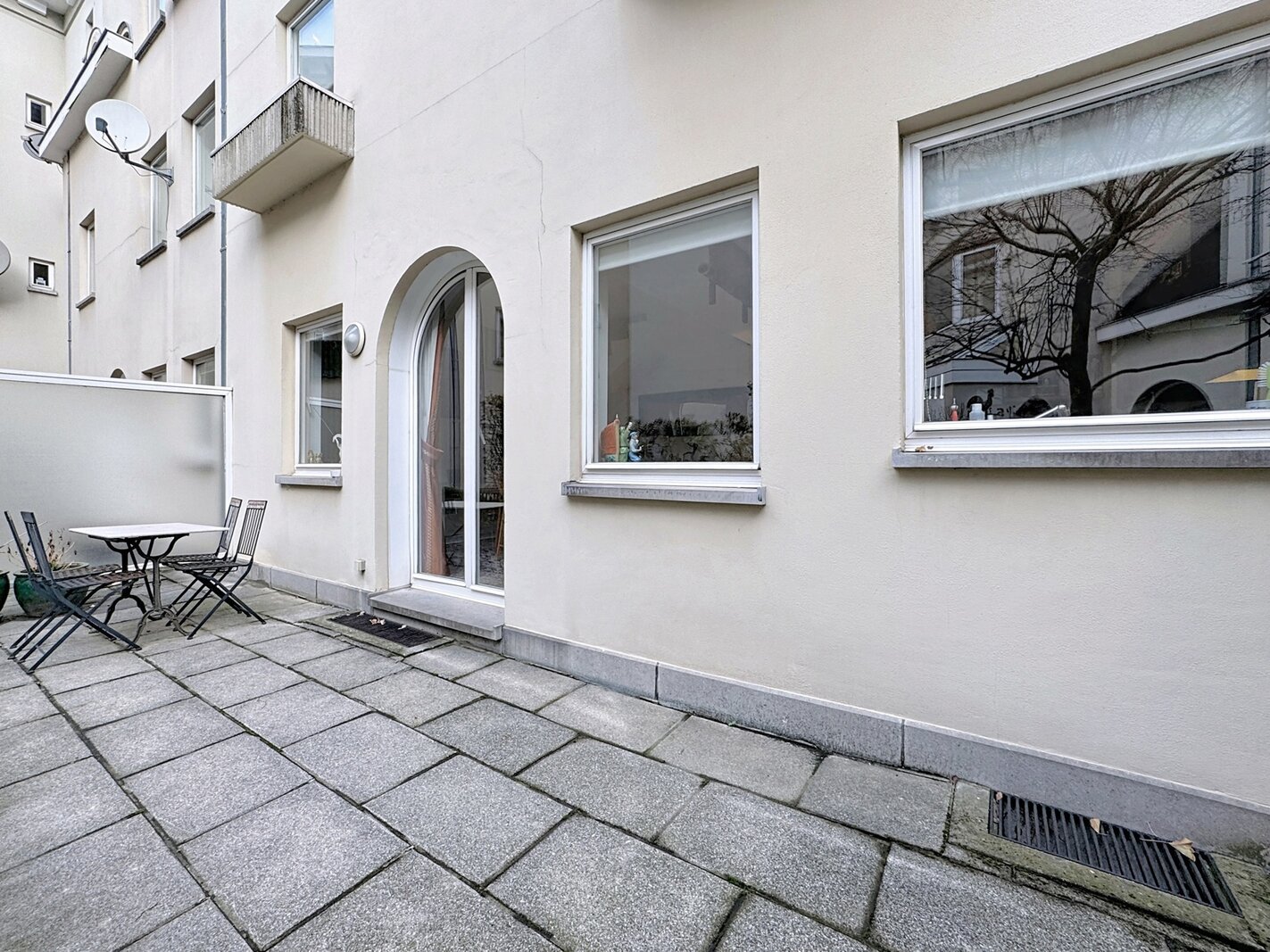 In the heart of Sablon, on a quiet street, this townhouse with two facades has a total surface area of ± 163m² and offers a beautiful outdoor space of ± 18m². It consists of a cloakroom, a separate toilet, a large living room with open kitchen, a lounge with TV corner and library, 3 bedrooms, two bathrooms, and a shower room.