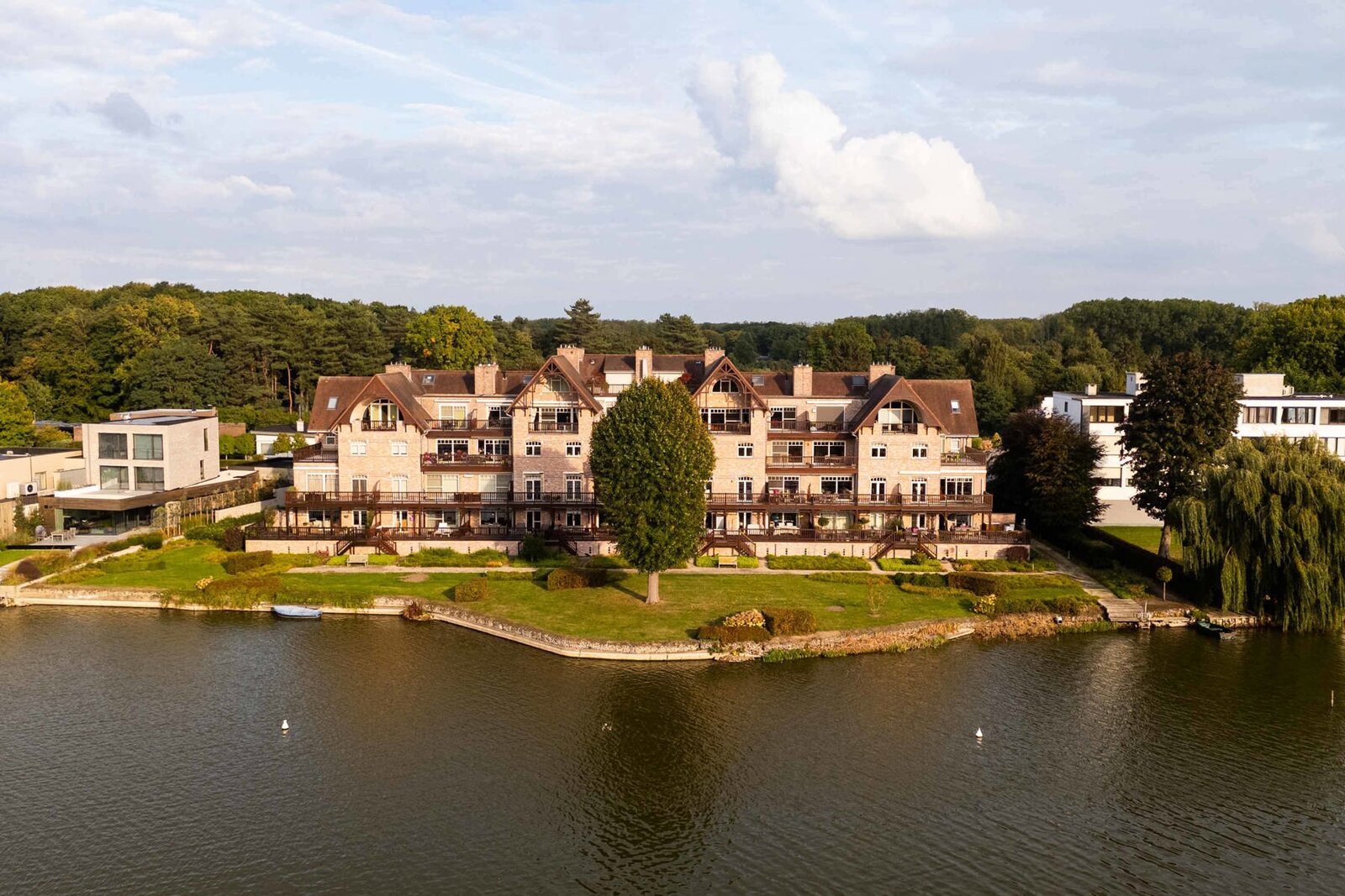 In het hart van Berlare, pal aan het prachtige Donkmeer, bevindt zich dit uitzonderlijk stijlvol appartement dat luxe, comfort en een ongeëvenaard uitzicht moeiteloos combineert. Gelegen in een recente residentie geniet je hier van absolute rust en privacy, met een vrij zicht op het water en de groene omgeving.