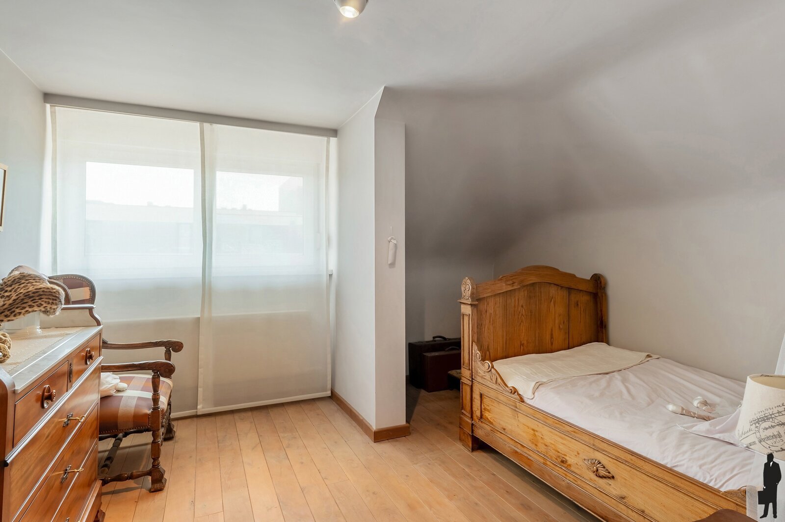 Verdieping: drie slaapkamers, een badkamer, een aparte doucheruimte en zolder.