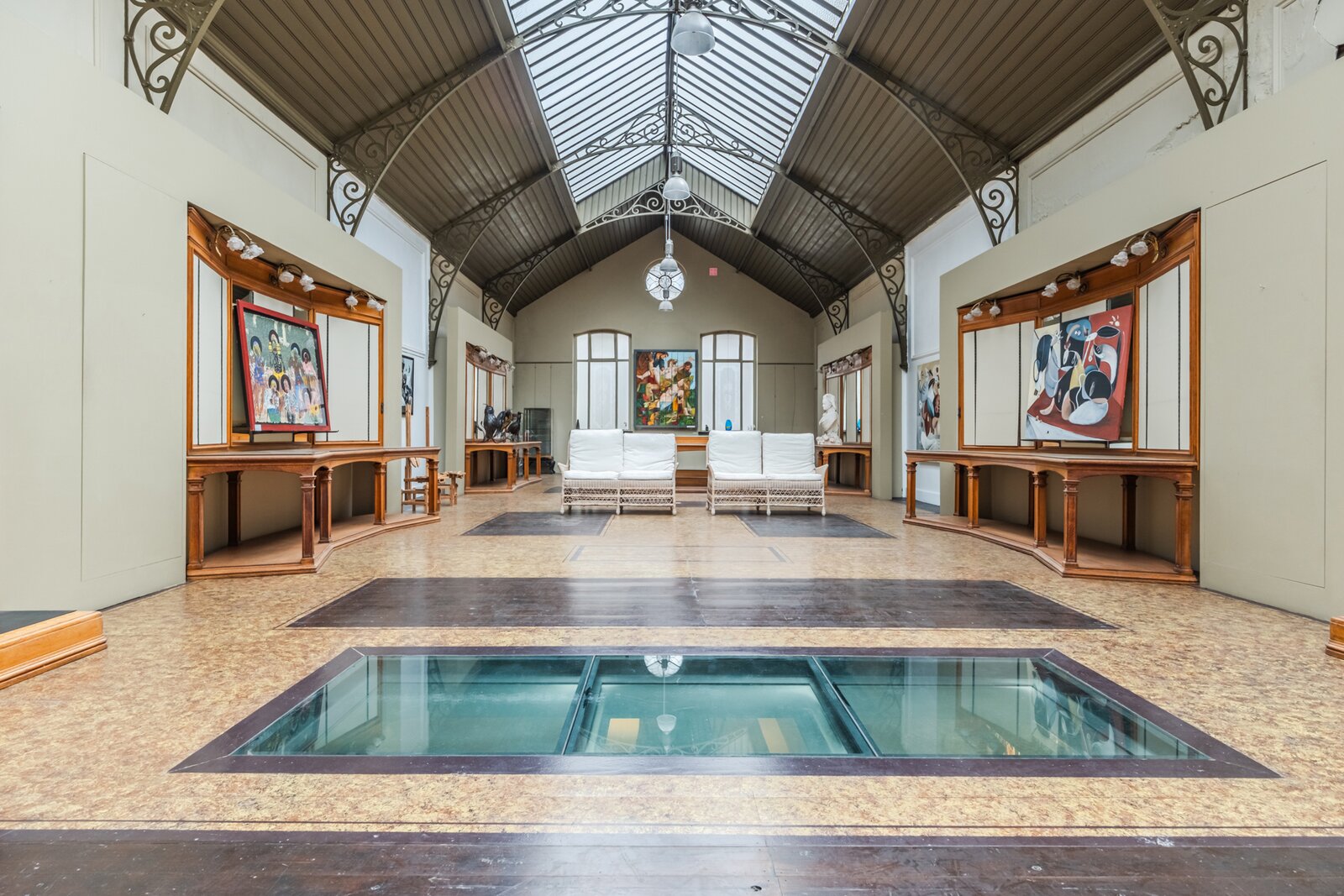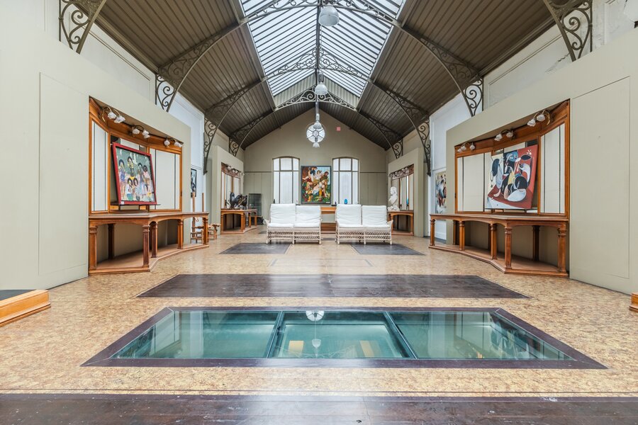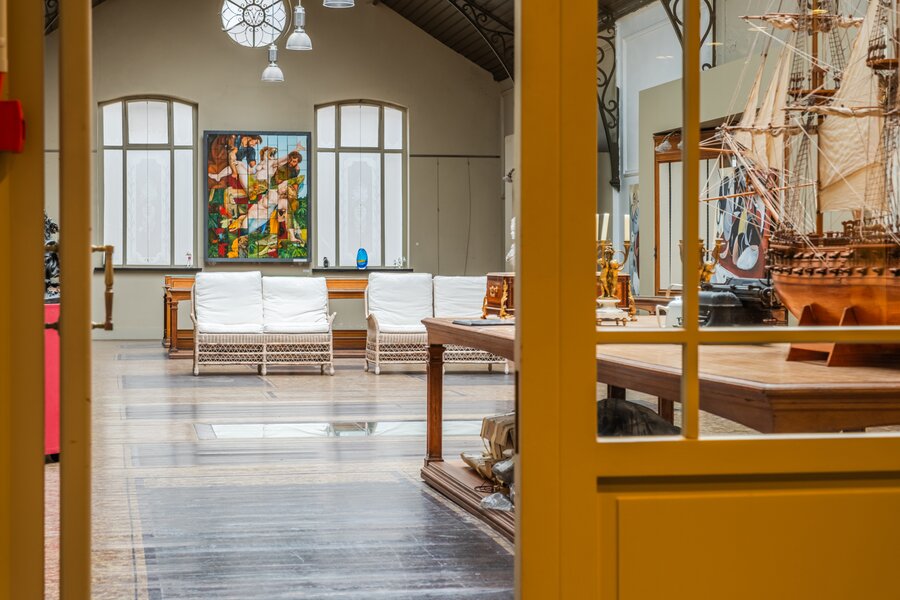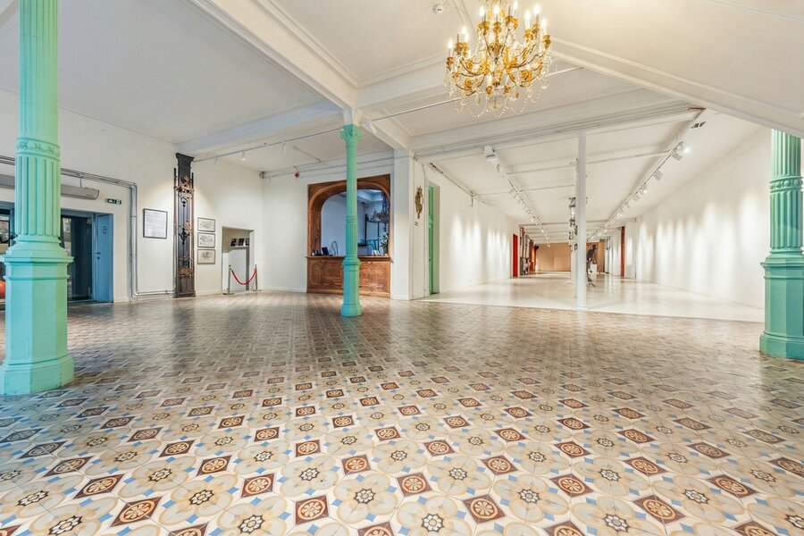 Ceramic-adorned façades, original shop windows, cast-iron columns, a coffered ceiling and exhibition spaces beneath a metal framework give the property a truly unique heritage character.