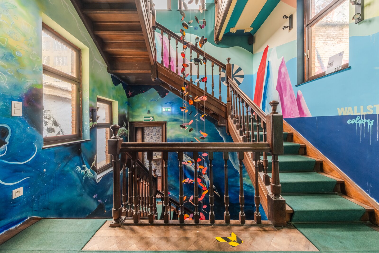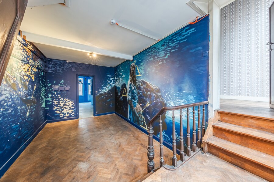 The ground floor offers approximately 800 sqm of fitted and renovated space facing the street, featuring four monumental display windows. The upper floors are divided into various uses: exhibition space, events, retail and residential.