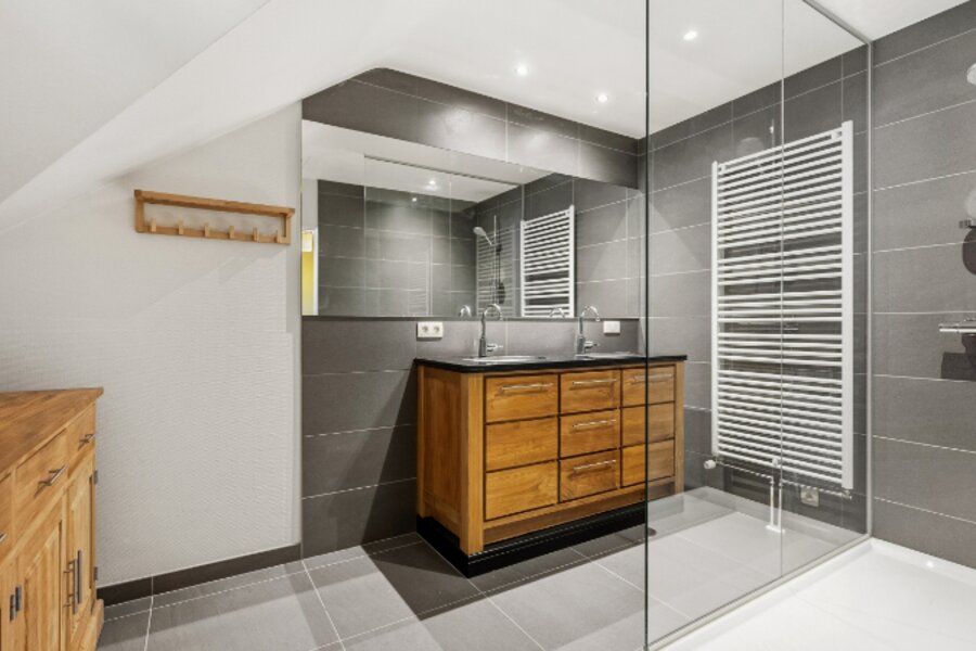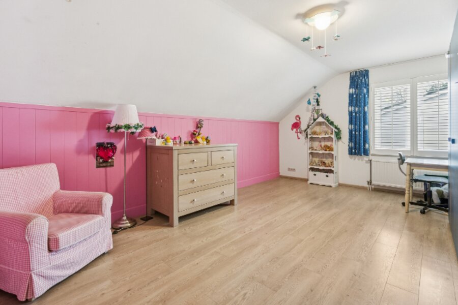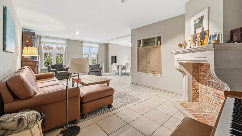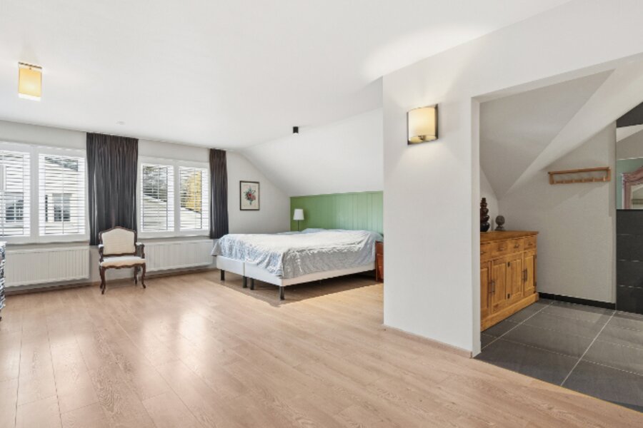 Omvat: inkomhal, wc, living 55m² met gashaard, volledig ingerichte keuken met eethoek, wasplaats-berging, dubbele garage, ruim bureel 24m², 5 ruime slaapkamers (41m² - 30m² - 25m² - 23m² - 15m²), 3 bad-of douchekamers (waarvan 1 slpk en 1 douchek op gelijkvloers), 2de wc, ruime bergzolder.
