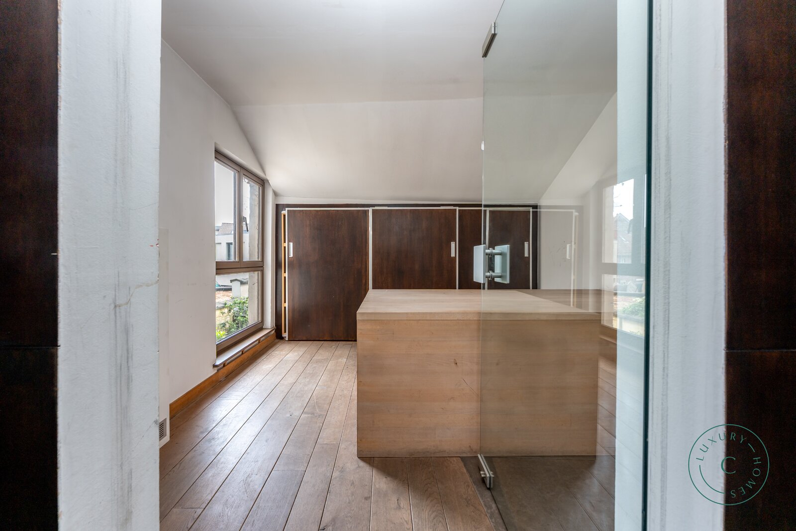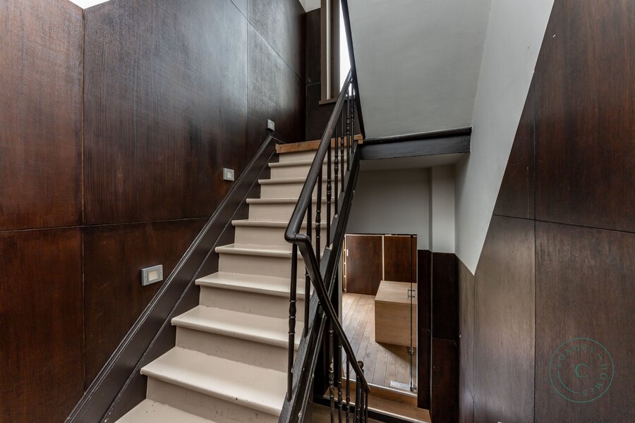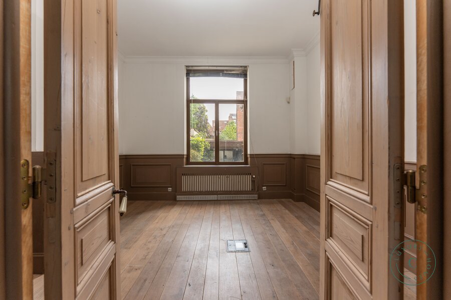 De woning beschikt over drie volwaardige verdiepingen, waarop meerdere slaapkamers en badkamers kunnen worden gecreëerd. Doorheen de volledige woning ligt er een authentieke parketvloer, wat de warme sfeer van het pand versterkt. De derde verdieping is een royale, reeds geïsoleerde zolderruimte die tal van mogelijkheden biedt voor verdere afwerking: een extra leefruimte, een master suite of een zelfstandige studio behoren tot de opties.