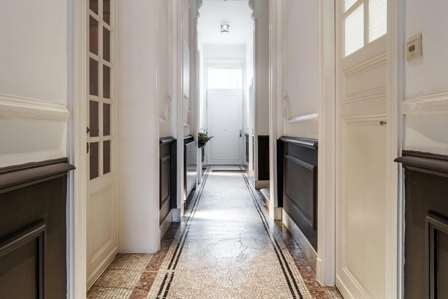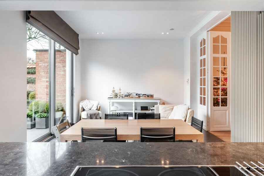 Ground floor: Beautiful entrance hall with authentic elements - ground floor room, furnished as an office - separate toilet - living room with dining room and lounge with original fireplace, this room has a high-quality solid parquet floor - extension with kitchen, with extra dining area and sitting area - adjoining laundry/utility room - beautifully maintained and landscaped garden with a view of the Menin Gate - spacious garden shed.
