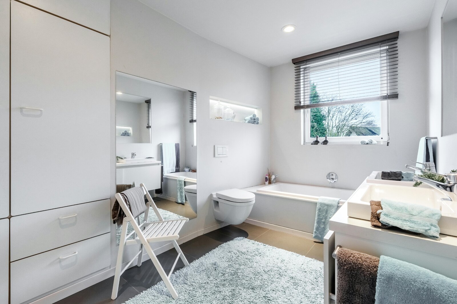 First floor: Three spacious bedrooms with built-in wardrobes - two bathrooms, one with bath and one with shower.