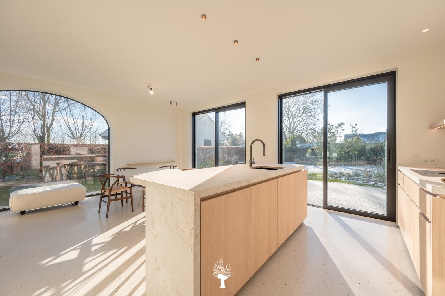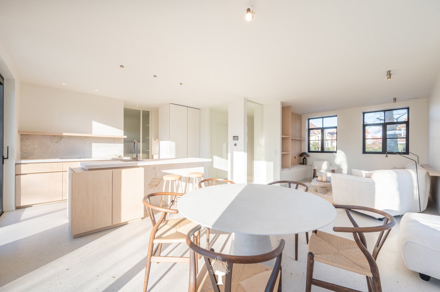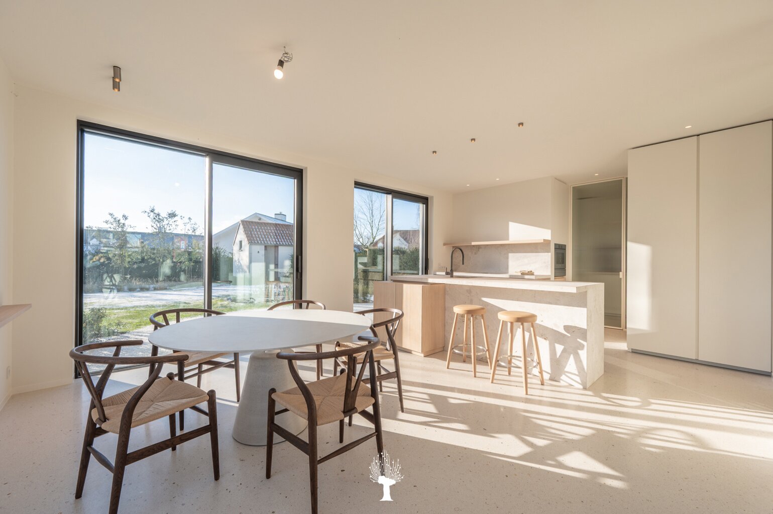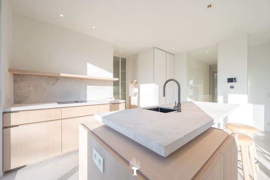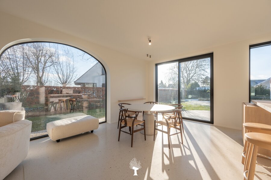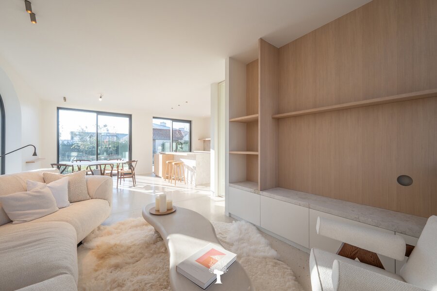 Nieuwe koppelvilla, gelegen aan de rand van het Zoute, een perfecte combinatie van verfijnde luxe, zonovergoten ruimtes en tijdloos design. De villa is gelegen op een unieke locatie, waar comfort en moderniteit samenkomen. Elk detail van de woning is met zorg en volgens de laatste normen afgewerkt, met een nadruk op zowel kwaliteit als sfeer. Een bijkomend voordeel bij de aankoop is dat de villa onder het stelsel van registratierechten valt, in plaats van BTW. Indeling: inkomhal, voorzien van een vestiaire en een gastentoilet. Ruime en lichte leefruimte: grote ramen, gecombineerd met de warme materialen. De eetkamer sluit perfect aan op een groot terras en een prachtig aangelegde tuin. Open keuken, met een kookeiland, afgewerkt in natuursteen en terrazzo, uitgerust met topapparatuur van V-Zug. Gezellige koffiehoek en een praktische bijkeuken.