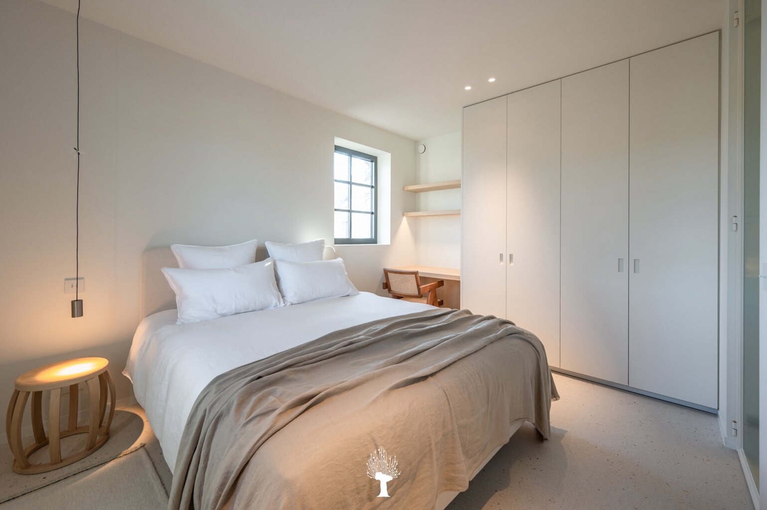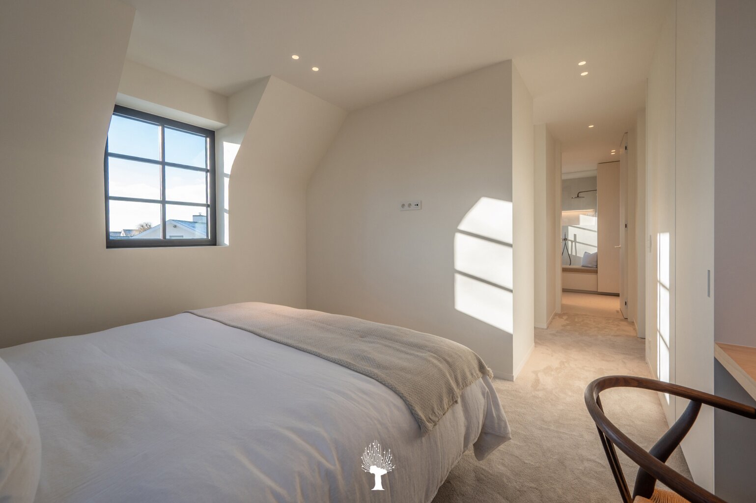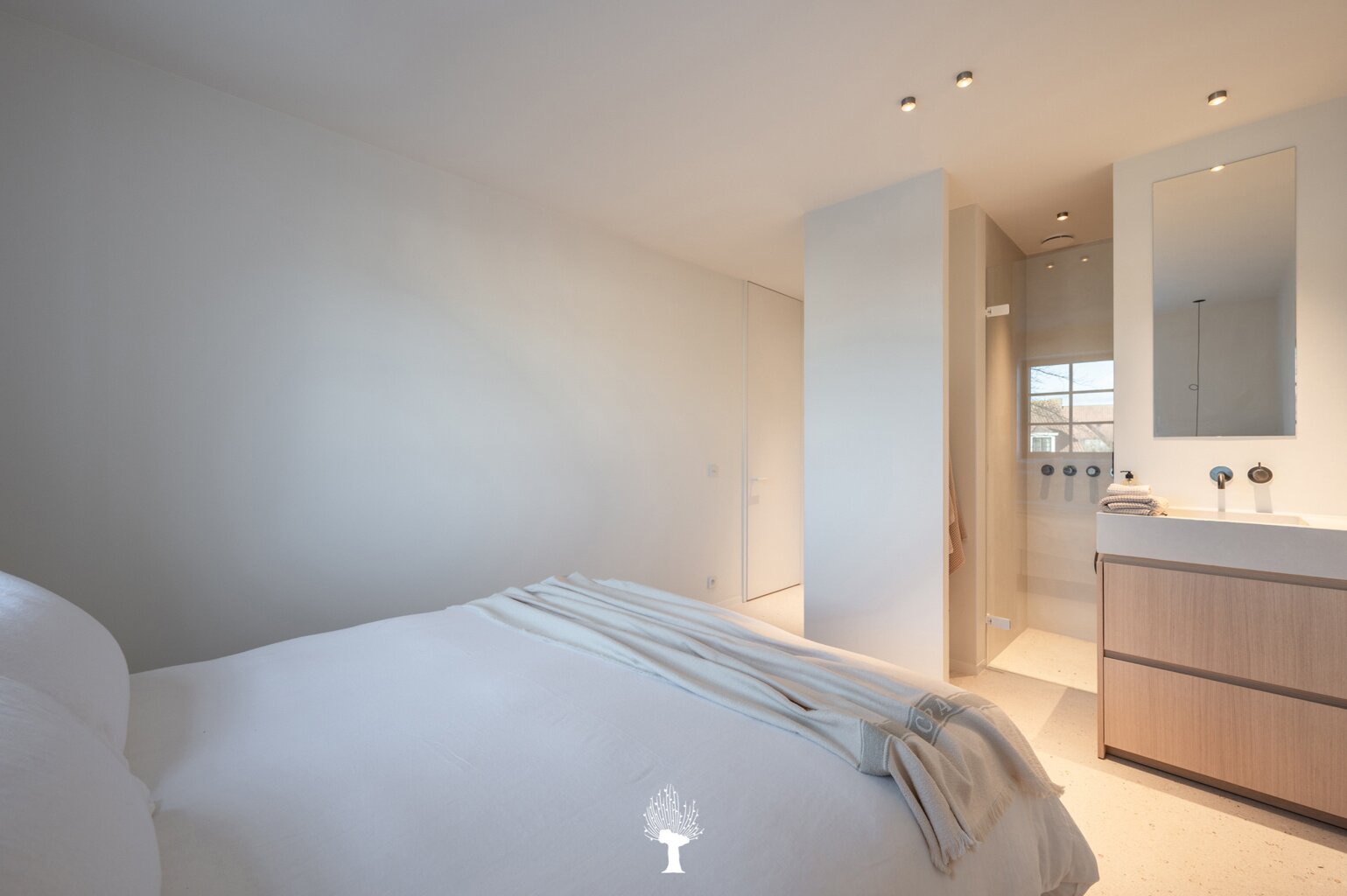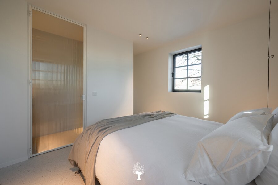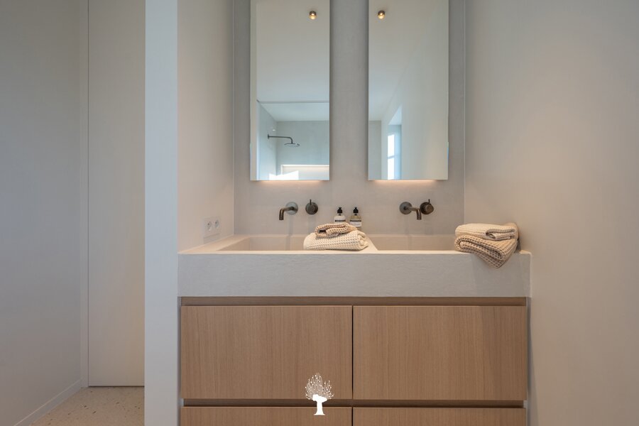 Eerste verdieping: drie ruime slaapkamers, allen voorzien van inbouwkasten en een eigen badkamer. De master suite is uitgerust met een ensuite badkamer, een ruime dressing en hoogwaardige afwerkingen in forcrete en terrazzo. Op de bovenste verdieping vindt u een vierde slaapkamer, die beschikt over een bureelhoek en een eigen douchekamer. Verder is er een polyvalente vijfde kamer, die naar wens kan worden ingericht als extra slaapkamer, hobbyruimte of ontspanningsruimte. De woning beschikt bovendien over een inpandige garage en een praktische wasruimte met directe toegang tot de tuin, wat het ideaal maakt voor gezinnen die op zoek zijn naar zowel luxe als functionaliteit. Deze instapklare villa op een toplocatie biedt een exclusieve woonervaring, waar stijl en comfort centraal staan.