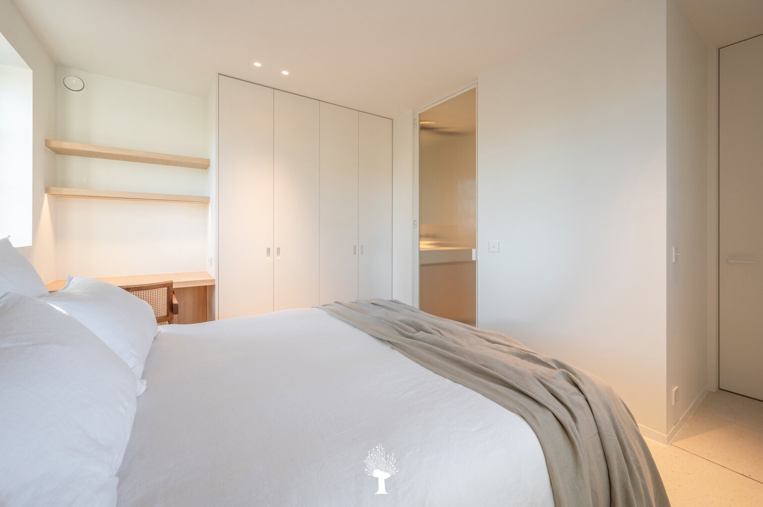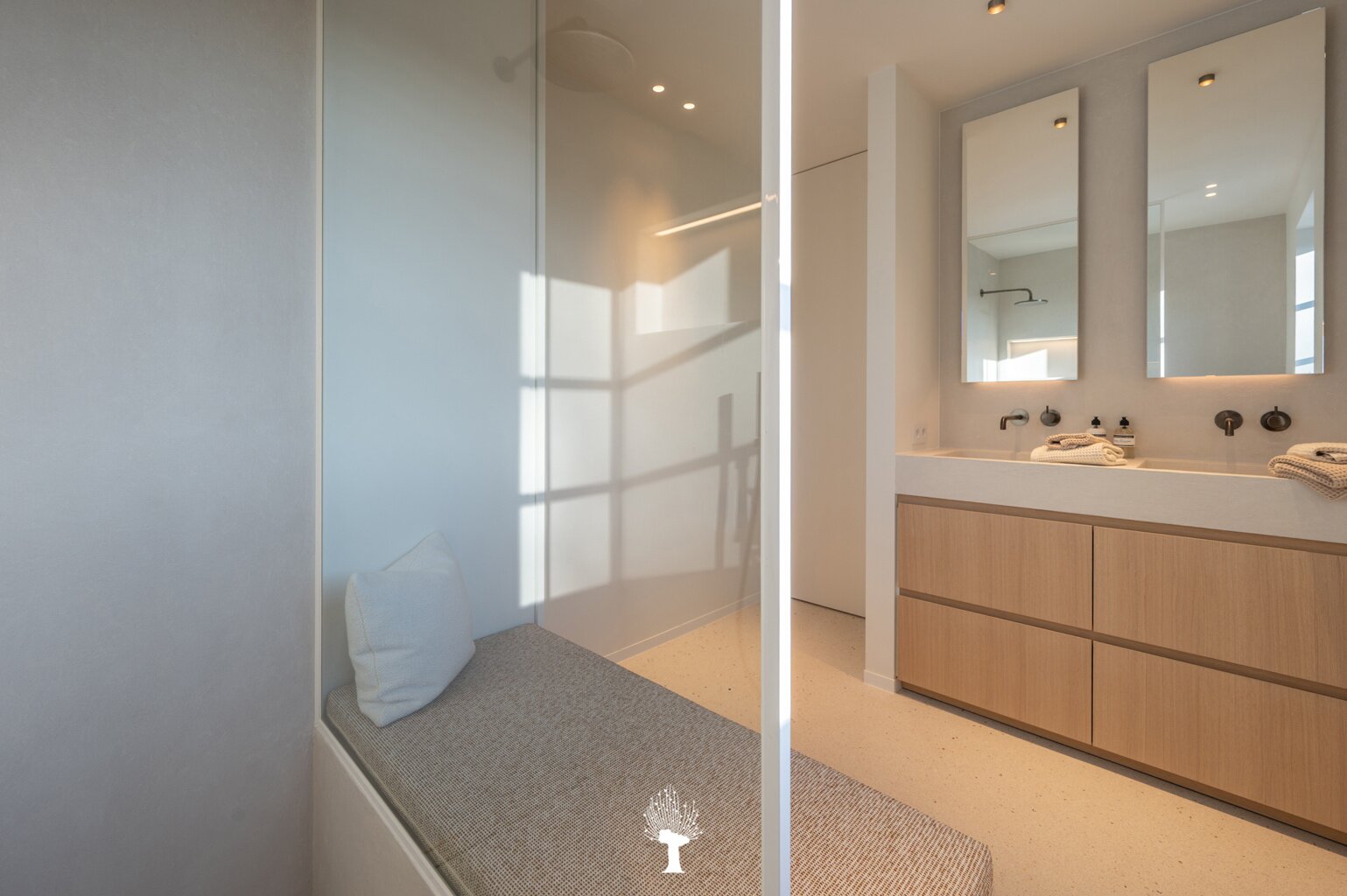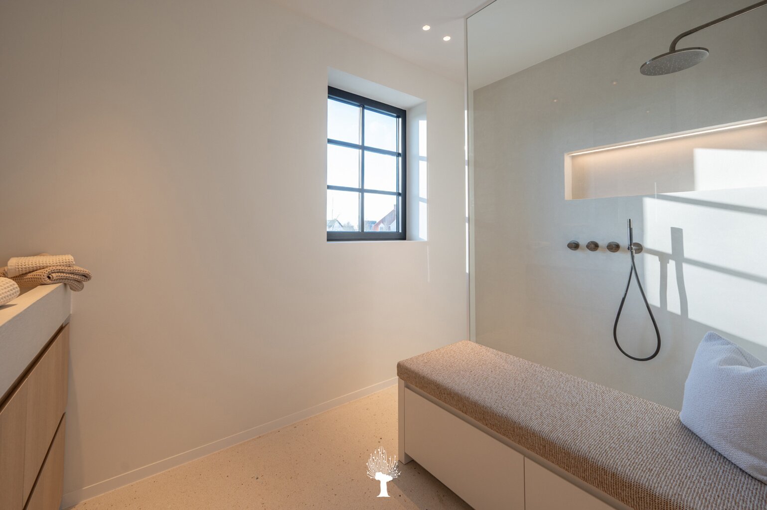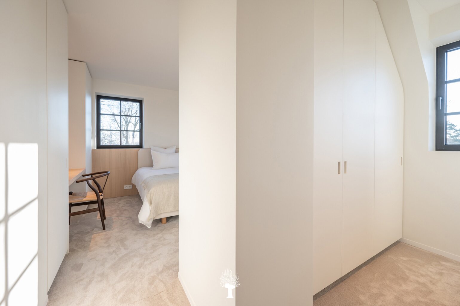 Eerste verdieping: drie ruime slaapkamers, allen voorzien van inbouwkasten en een eigen badkamer. De master suite is uitgerust met een ensuite badkamer, een ruime dressing en hoogwaardige afwerkingen in forcrete en terrazzo. Op de bovenste verdieping vindt u een vierde slaapkamer, die beschikt over een bureelhoek en een eigen douchekamer. Verder is er een polyvalente vijfde kamer, die naar wens kan worden ingericht als extra slaapkamer, hobbyruimte of ontspanningsruimte. De woning beschikt bovendien over een inpandige garage en een praktische wasruimte met directe toegang tot de tuin, wat het ideaal maakt voor gezinnen die op zoek zijn naar zowel luxe als functionaliteit. Deze instapklare villa op een toplocatie biedt een exclusieve woonervaring, waar stijl en comfort centraal staan.