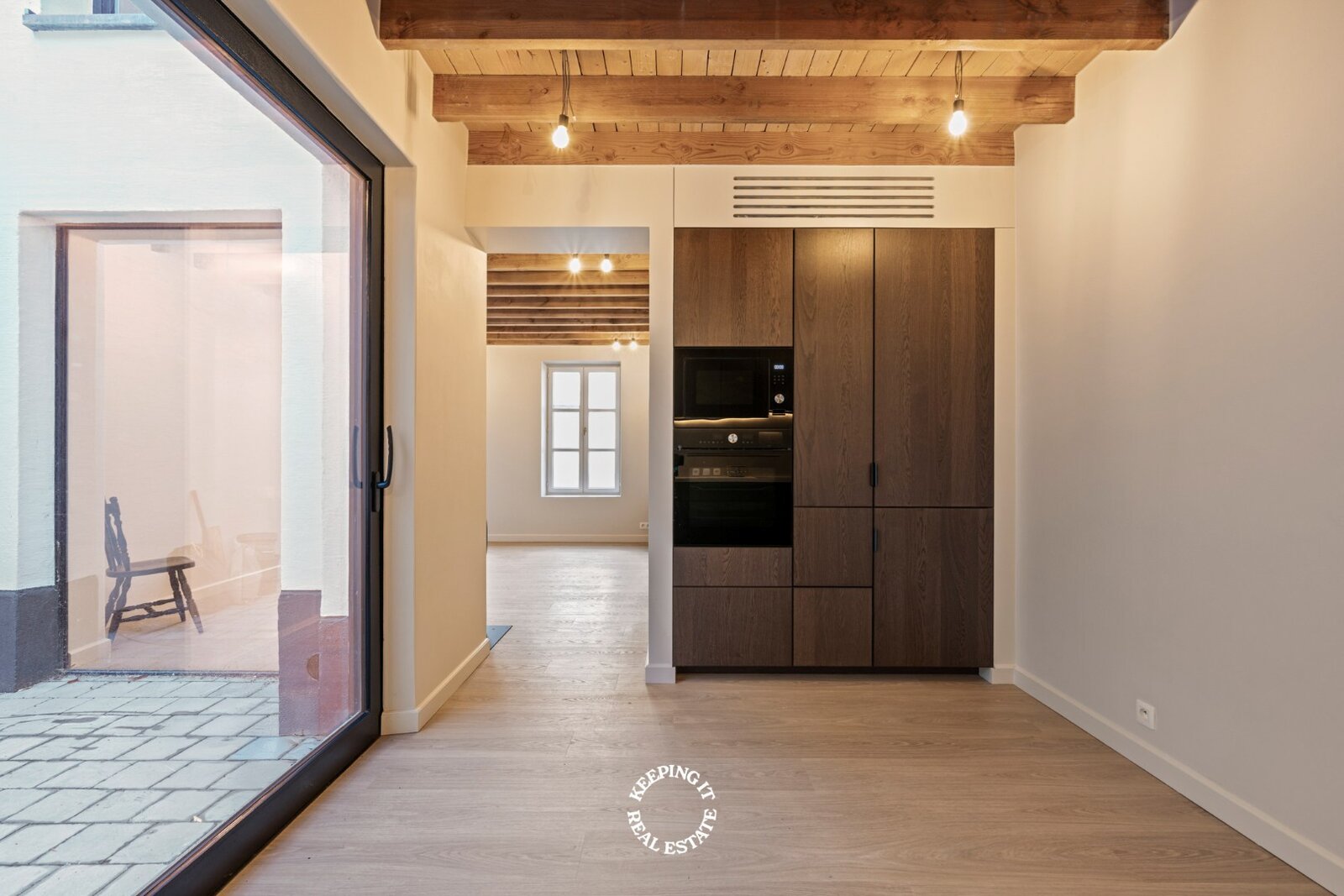 Binnenin heerst complete rust. De verfijnde afwerking, de keuze voor natuurlijke materialen en het harmonieuze kleurenpalet creëren een warme en rustgevende sfeer. De combinatie van kwaliteit en energiezuinigheid maakt van deze woning een zeldzame vondst in het historische stadscentrum.