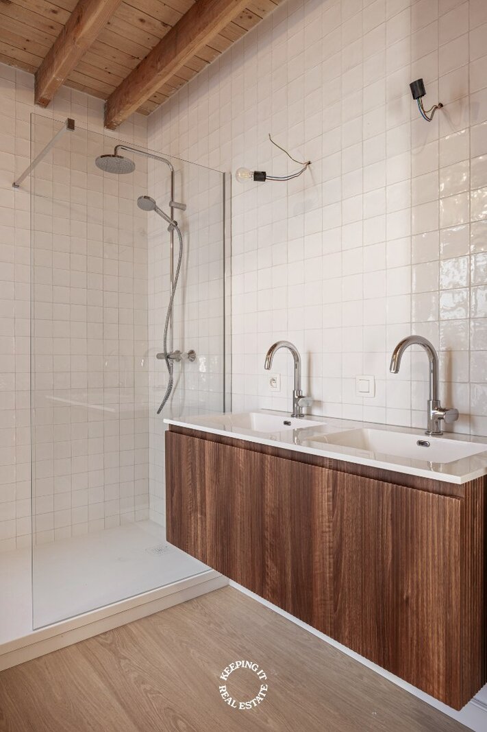Achter de charmante voorgevel schuilt een volledige nieuwbouw. De woning werd tot op de kern gestript en met oog voor detail opnieuw opgebouwd. Alle leidingen (van water en elektriciteit tot riolering) werden vernieuwd, wat resulteert in een energiezuinig geheel met energielabel B. Een geruststellende garantie op lage energiekosten én een duurzaam toekomstperspectief.