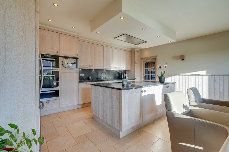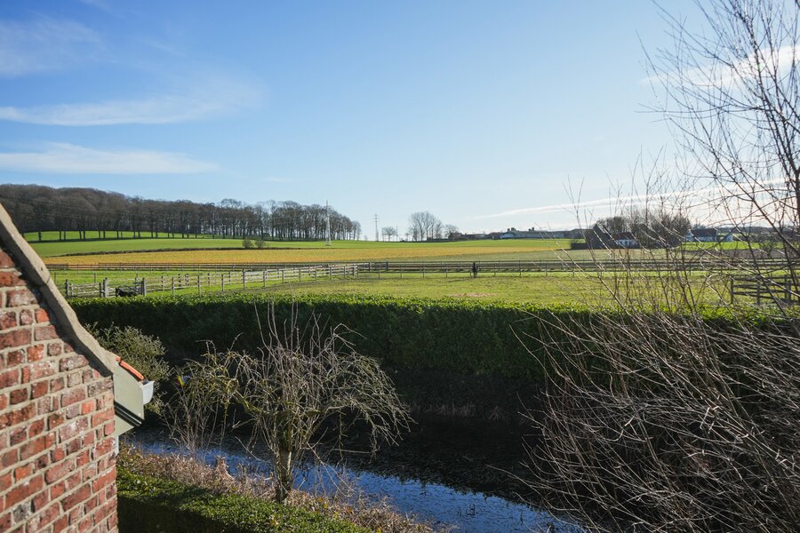 The centrally positioned country villa, built in the early 2000s, forms the elegant heart of the estate. Constructed with high-quality materials, it blends perfectly with the setting. Large windows provide abundant natural light and beautiful views over the meadows and arenas.