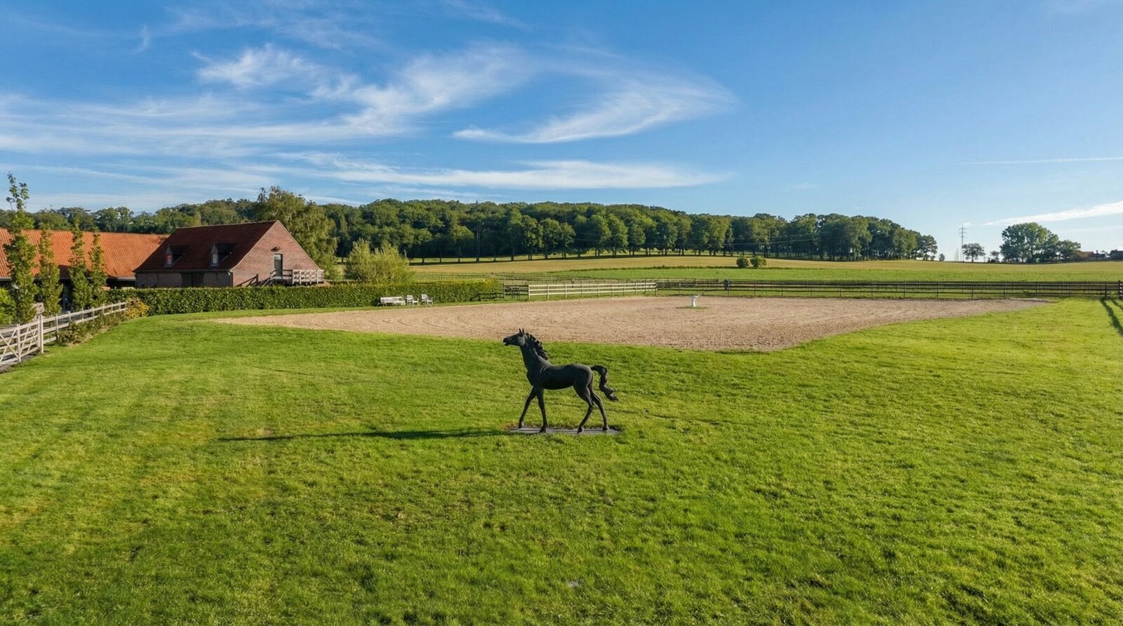 This exceptional estate, accessed via an elegant cobblestone driveway, is set on approximately 3.4 hectares and offers space, privacy and absolute tranquillity. It combines an exclusive country villa with fully equipped professional equestrian facilities – a rare opportunity for those wishing to unite refined living with top-level equestrian sport.