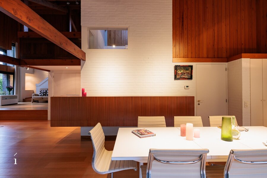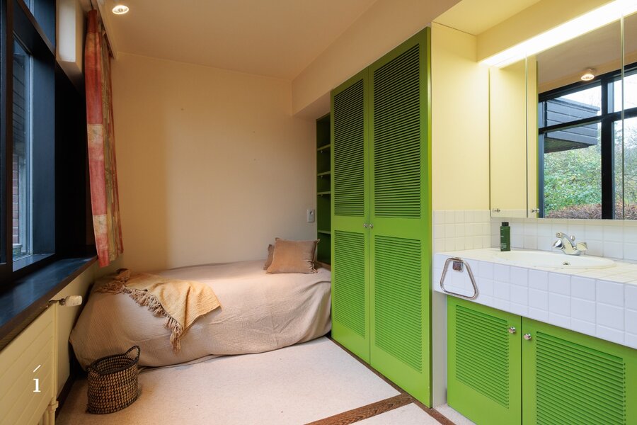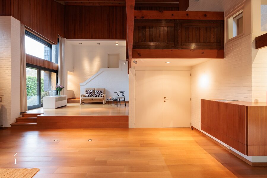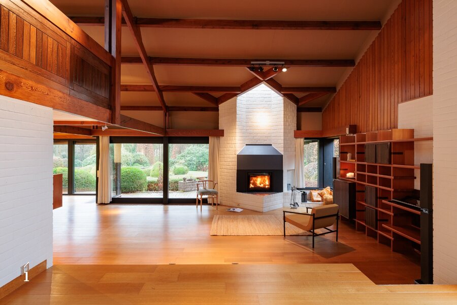 Deze architectenwoning, ontworpen in 1975 door de gerenommeerde architect Jean Van den Bogaerde, is een treffend voorbeeld van zijn unieke ontwerpstijl. Het huis bevindt zich in een rustige, groene omgeving. Omringd door een volwassen, zorgvuldig aangelegde tuin die uitkijkt op een weelderige groenborder. Op wandelafstand liggen schilderachtige wandelroutes, het gezellige centrum van Deurle, diverse restaurants en ontspanningsmogelijkheden.