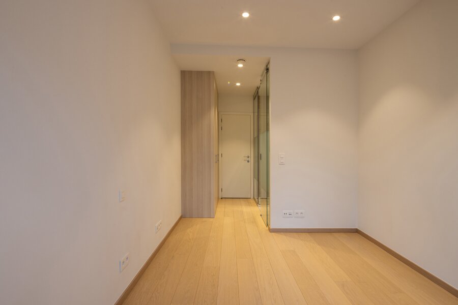 Perfectly located in the prestigious Place Brugmann area, within a magnificent fully renovated/built building offering high-end finishes. This excellent apartment is laid out as follows: entrance hall with cloakroom and guest toilet, spacious and light-filled living areas through large windows providing access to the ± 53 m² terrace with exceptional views of the park, fully equipped open kitchen, hallway, 2 beautiful bedrooms, each with its own bathroom and an adjoining shower room, custom-made closets and dressing room, laundry room. Cellar (€5,000) Parking space (€60,000). EPC C+