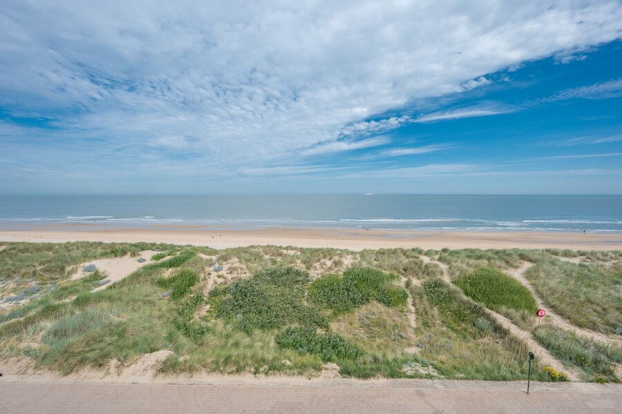 Magnifiek appartement op de wandeldijk in het Zoute, met adembenemend frontaal zeezicht.