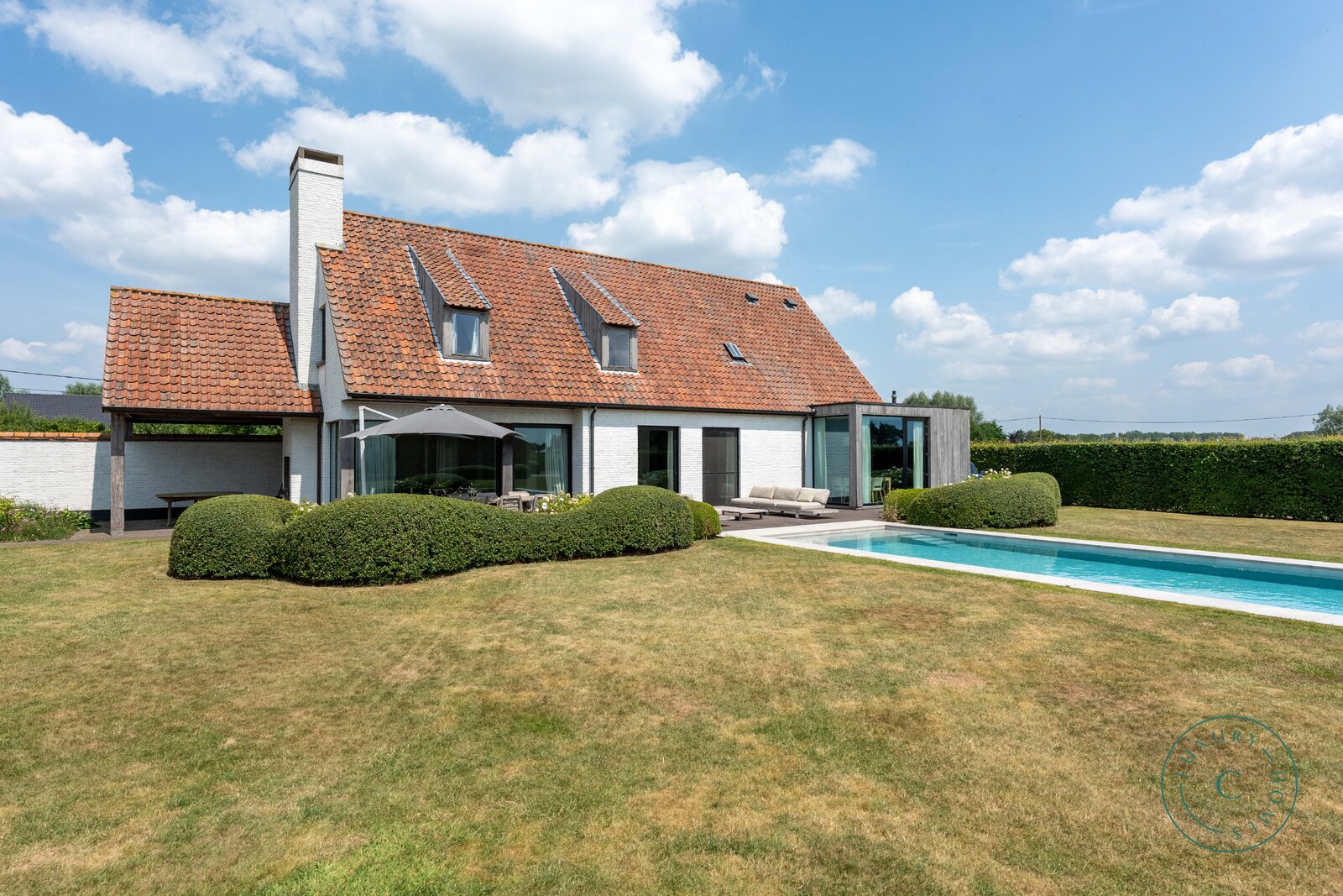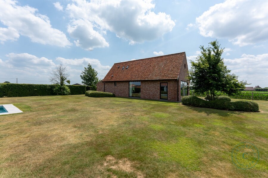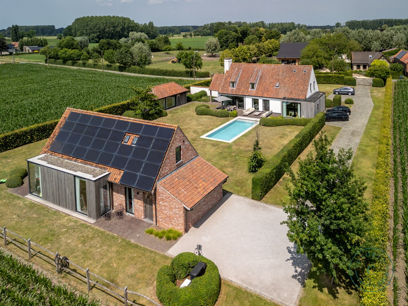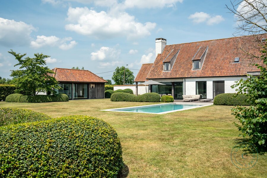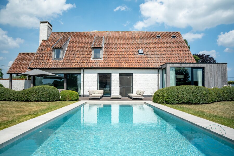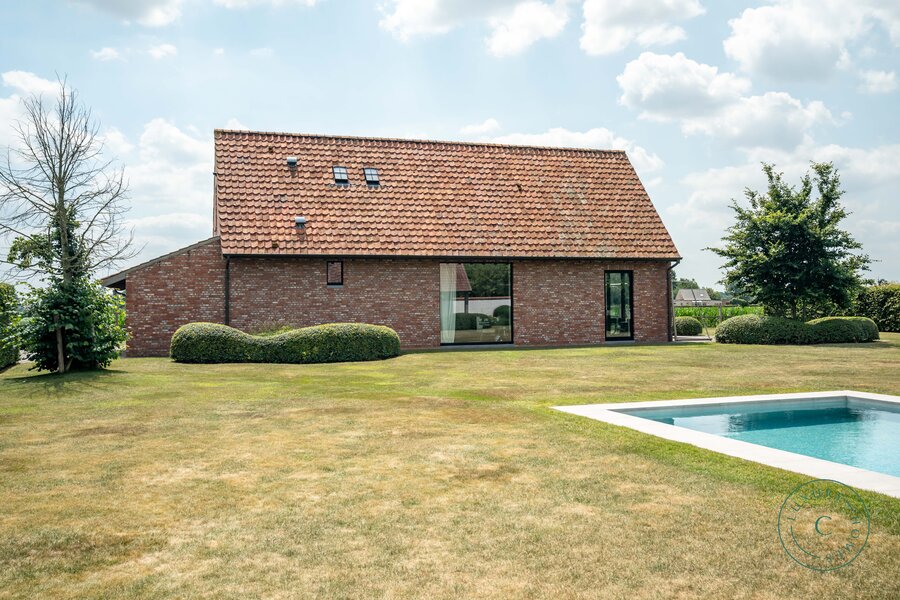 Op de grens met Hertsberge in een rustige en groene omgeving bevindt zich deze prachtige villa met zwembad en bijgebouwen, een perfecte combinatie van verfijnde architectuur, comfort en privacy. Gelegen op een royaal zuidgericht perceel van 3.448 m², geniet deze woning van een open, groen uitzicht en maximale discretie.