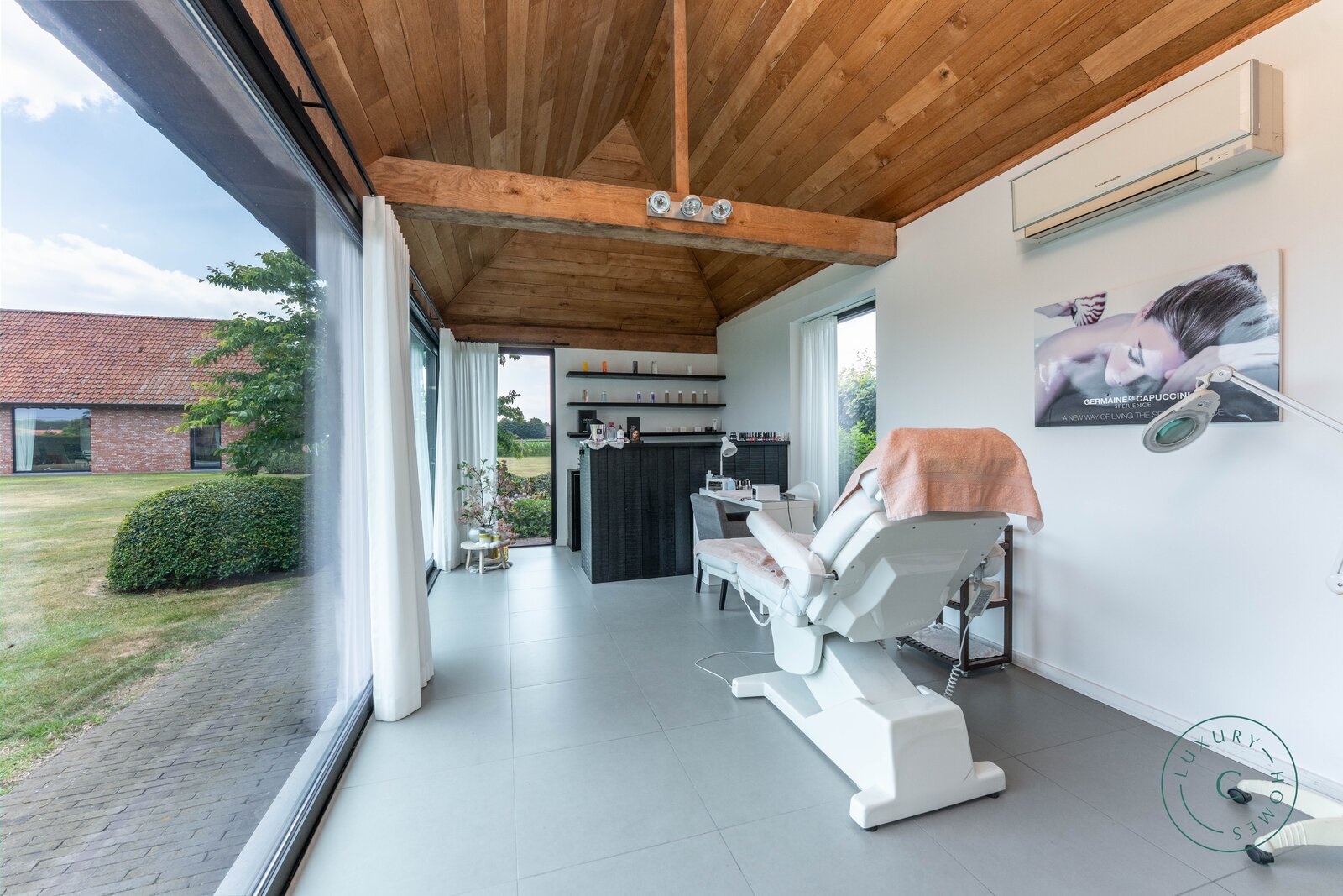 De polyvalente bijgebouwen bieden tal van mogelijkheden, als hobbyruimte, gym, gastenverblijf of kantoor. Ook op technologisch vlak schiet deze woning niets te kort, met onder meer een geavanceerd domoticasysteem, alarminstallatie, zonnepanelen en een laadpaal voor elektrische wagens.