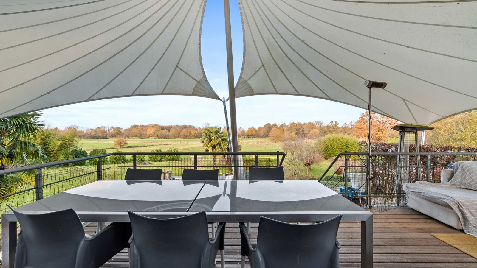 Het magnifiek terras met superlang en verwarmd zwembad (maar liefst 3,5m * 14m) is afgeschermd met een lange muur. Het perceel grenst achteraan aan landbouwgebied en dankzij het magnifiek zicht en de aanwezigheid van de palmbomen lijkt dit geheel op een heuse vakantiebestemming!