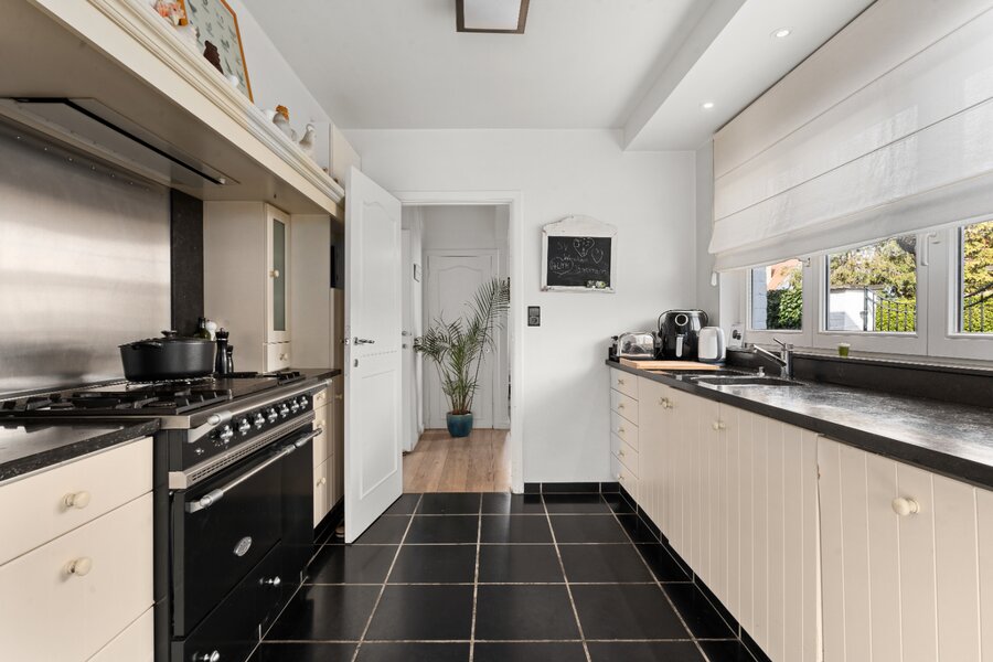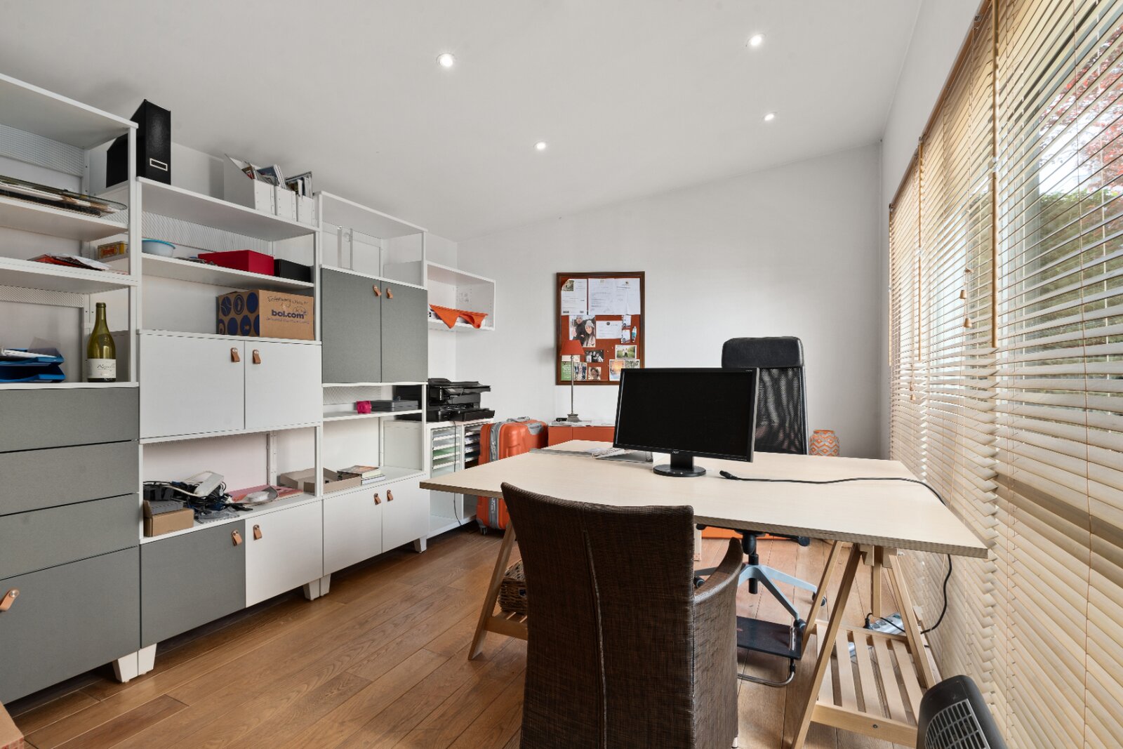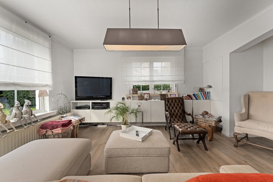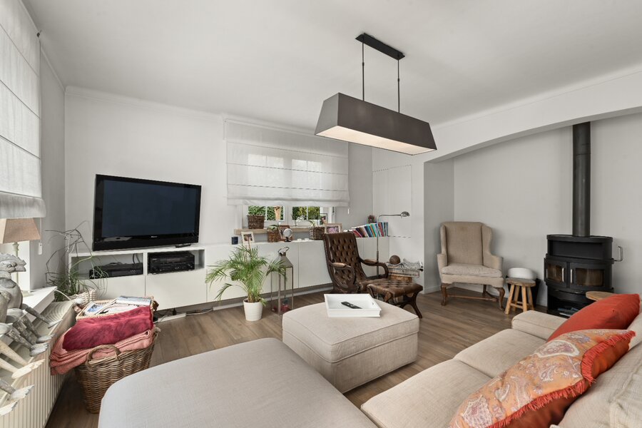 Entrance, separate toilet, pleasant living room with sitting and dining area, fully equipped kitchen with all appliances. From the dining area you can enjoy views of the garden. The storage room has connections for washing machine and dryer. Separate office space. On the first floor there are 3 bedrooms, the master bedroom has an ensuite bathroom. Two large bedrooms with a separate shower room in the hallway.