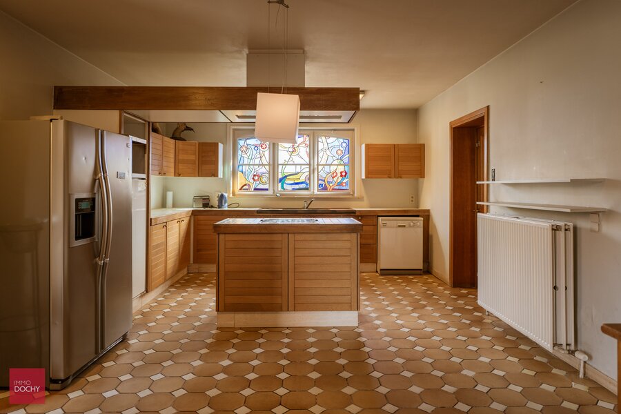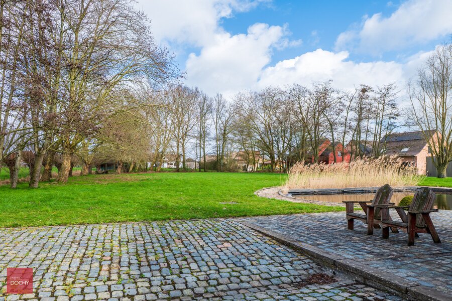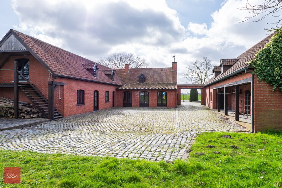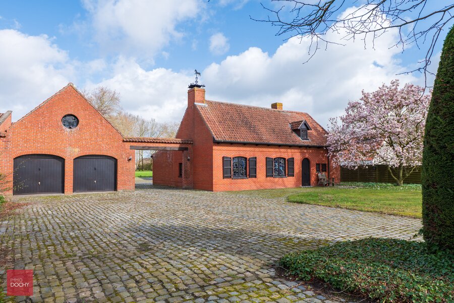 Villa bestaande uit inkomhal, living met open haard, eetplaats, keuken, wasplaats, 3 slaapkamers (1 gelijkvloers), 2 badkamers (1 gelijkvloers), mancave (bar), grote dubbele garage, 3 paardenboxen (of stockageruimte), tuin met vijver en barbecue. Opp. 4.876m².