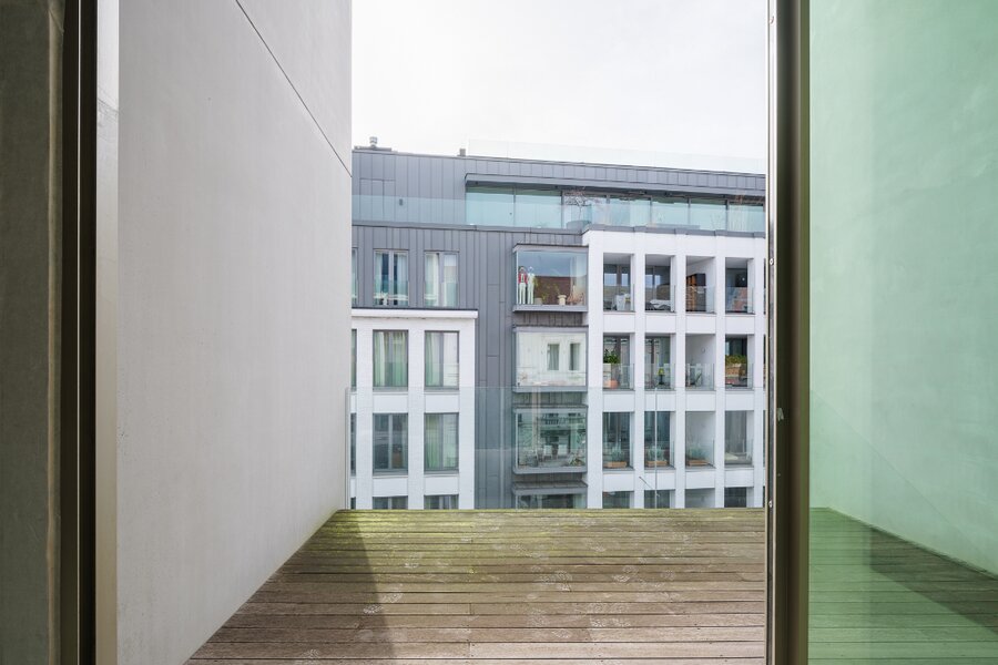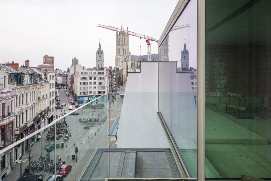 Gelegen in het centrum van Gent, namelijk in de historische Vlaanderenstraat waar hoofdzakelijk 19e-eeuwse gevels het straatbeeld kenmerken, vinden we deze unieke penthouse.