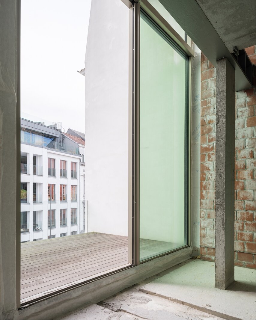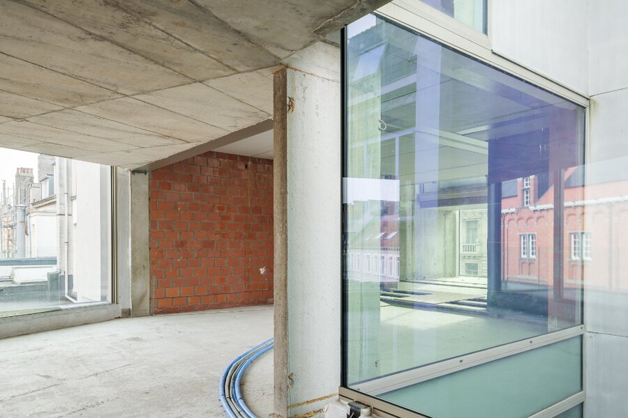 Deze casco triplex bevindt zich in het prestigieuze project ‘Domus Aurea’, naar de hand van Govaert en Vanhoutte Architecten en uitgevoerd door ABS Bouwteam, met als gevolg de winst van de ‘Popular Choice Winner’, de Amerikaanse Architizer A+ Award.