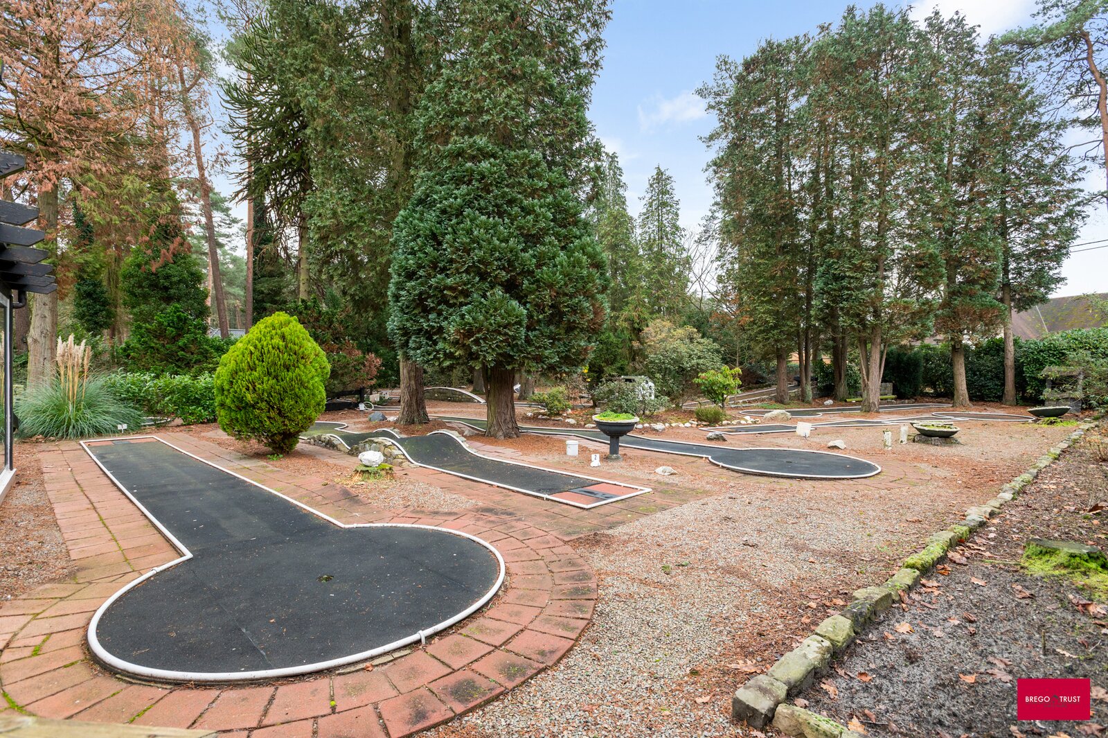 Kortom een mooi verzorgd eigendom op een groene locatie met extra mogelijkheden voor wie aan huis wil werken en ontspannen, volledig omheind en voorzien van een automatische poort. Het riante perceel is gedeeltelijk voorzien van een mini-midgetgolf en is eveneens toegankelijk via een achter gelegen straatje.