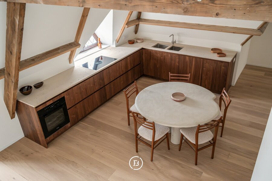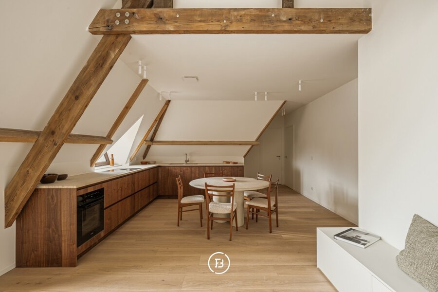 Appartement “Attique” is een royaal villa-appartement in een karaktervolle, gerenoveerde villa (1939), waar historische grandeur en hedendaags comfort harmonieus samenkomen. Hoge plafonds, indrukwekkende raampartijen en verfijnde detaillering worden subtiel gecombineerd met een hoogwaardige, hedendaagse afwerking.