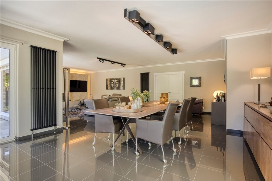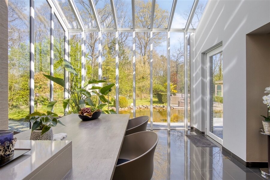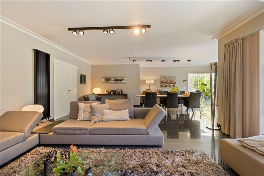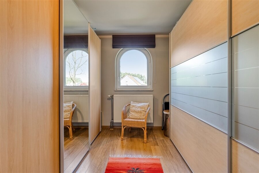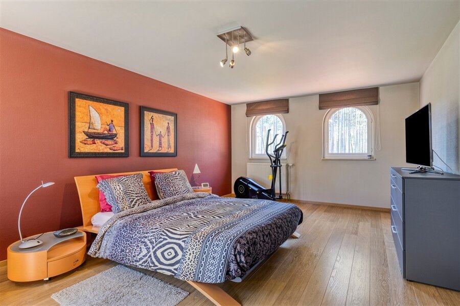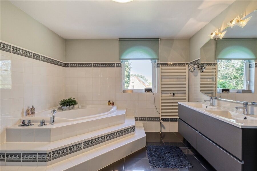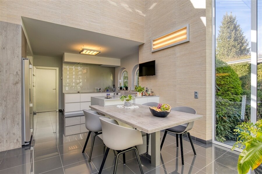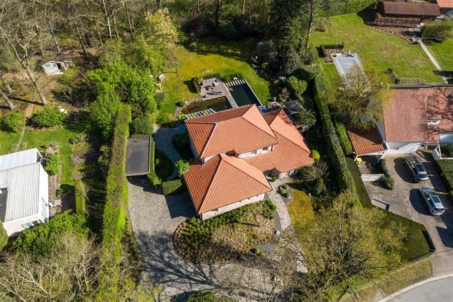 In the middle of a lush oasis of calm, in a child-friendly and serene living environment, near the Abbey of Averbode, we are honored to offer for sale this spacious and prestigious Romanesque villa. This perfectly maintained property with a usable area of no less than 259 m² and situated on a perfectly oriented plot of 2196 m² is extremely quietly situated in a beautiful wooded area and close to all major roads. This spacious and ready-to-use villa comprises on the ground floor a spacious entrance hall with checkroom and guest toilet, an office/bedroom, a spacious garage and a practical laundry/storage room. In addition, this gem on the ground floor comprises a majestic living space of approximately 75 m² with an adjacent open-plan luxury bespoke kitchen, which in turn provides access to the sun-drenched rear garden, where a permanent vacation feeling reigns. On the second floor, this property boasts 2 full-size bedrooms, a separate toilet and a fully equipped bathroom. The presence of a beautifully landscaped garden with impressive driveway, spacious terraces, a garden shed and a beautiful pond with separate large swimming area, make this prestige villa a unique dream home! In short, this high-quality finished property in a rural and child-friendly environment, near Averbode Forest and Heath, is definitely worth your visit. A unique and not to be missed opportunity!
