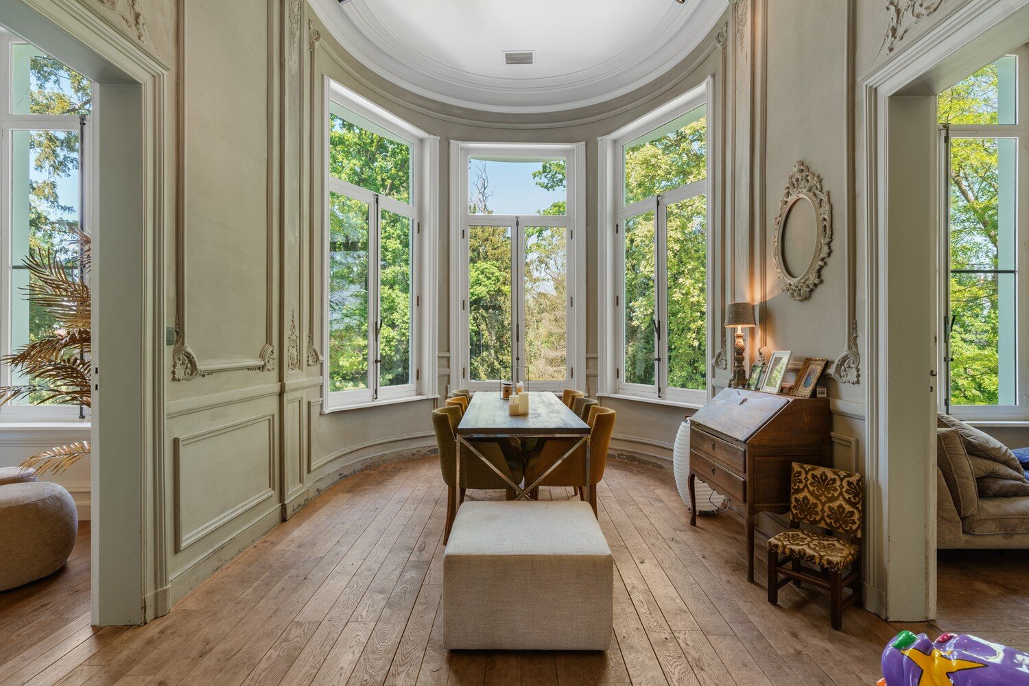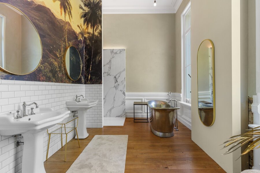 Het kasteel aan de Kasteeldreef in Temse, beter gekend als kasteel Bunneghem-Sloor, dateert uit het begin van de 19de eeuw. Het werd gebouwd als jachtpaviljoen voor Jean-Baptiste Bernadotte, maarschalk van Napoleon Bonaparte en later koning van Zweden. Het neoklassieke gebouw is een van de meest waardevolle gebouwen in de Scheldegemeente en herbergt een uniek Egyptisch salon. Het kasteel is gelegen op een perceel van circa 24 are en heeft een bewoonbare oppervlakte van ongeveer 750 m². De huidige eigenaar heeft dit landgoed in 2017 grotendeels gerestaureerd en heringericht en met gebruik van hedendaagse technologie herschapen tot een echt leefkasteel waar elegantie, verfijning en comfort in elkaar overvloeien. Het verblijf uit de 19e eeuw werd getransformeerd tot een ware showroom, waar oud en nieuw harmonisch samengaan. Je komt het kasteel binnen via de indrukwekkende inkomhal met zuilen, cassettenplafond en natuurstenen vloer. Grote raampartijen en hoge plafonds zetten meteen het enorme ruimtegevoel in de verf. De salons zijn rijkelijk gedecoreerd: het Egyptische salon met muurschilderingen en het Vlaamse salon met natuurstenen haard en Delftse tegels zijn ware blikvangers. Via de majestueuze houten trap komt men op de eerste verdieping met een neoclassicistisch salon, een ingerichte keuken, verschillende slaapkamers en twee badkamers. De tweede verdieping (dakverdieping) telt eveneens verschillende slaapkamers en sanitaire ruimtes. Deze ruimte heeft nog wat liefde nodig en dient deels onder handen genomen te worden. Het kasteel beschikt ook over een recent aangelegd zwembad en poolhouse en is ook deels onderkelderd. Temse is ideaal gelegen in de driehoek Antwerpen-Gent-Brussel, uitermate geschikt dus voor mensen die woon-werk willen combineren. Voor meer informatie, gelieve contact op te nemen met ons kantoor. Stedenbouwkundige vergunning verkregen Recente bestemming: Woonpark Geen rechtelijke maatregel opgelegd Voorkooprecht Verkavelingsvergunning EPC: 307 kWh/(m²jaar) - label D - UC: 3591211 P-score: A en G-score: A
