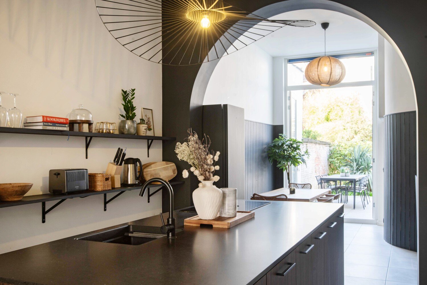 The pot has barely touched the stove in your brand-new kitchen when the first guests arrive. The kitchen is exactly where it should be: at the heart of the home, at the heart of the gathering. You dine together in the garden, perfectly sunlit at this time of day.
