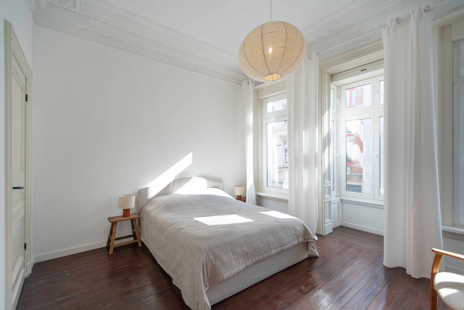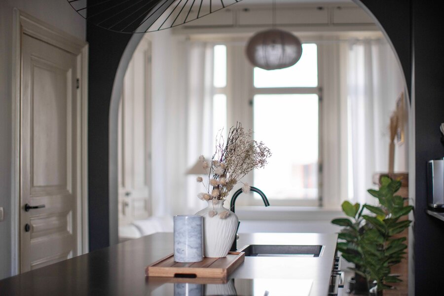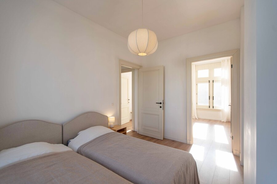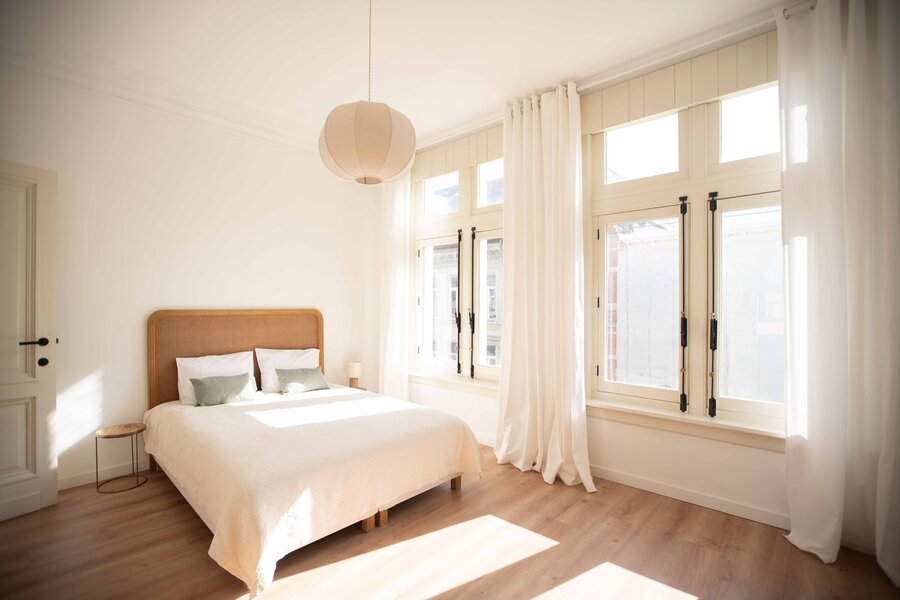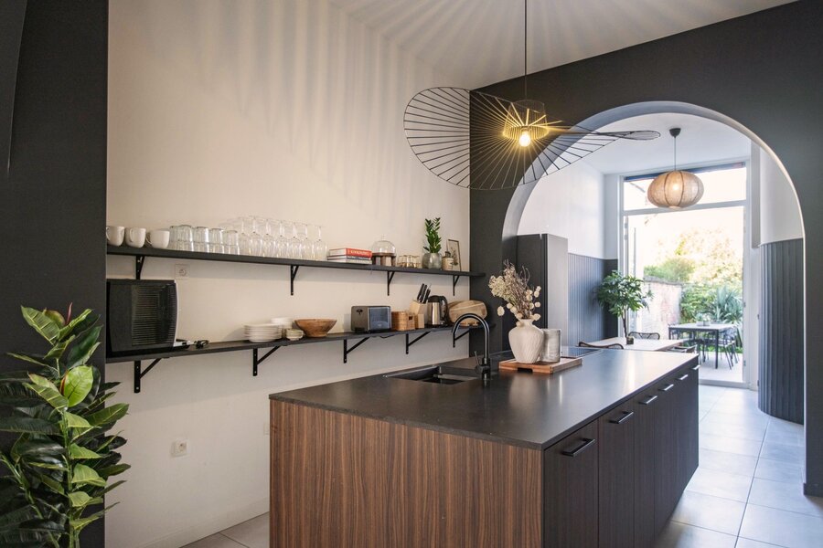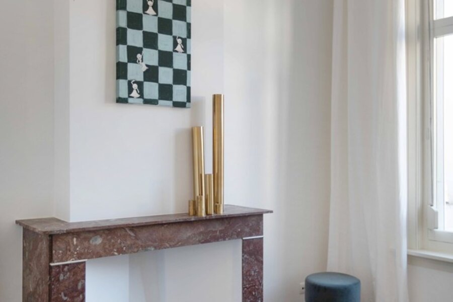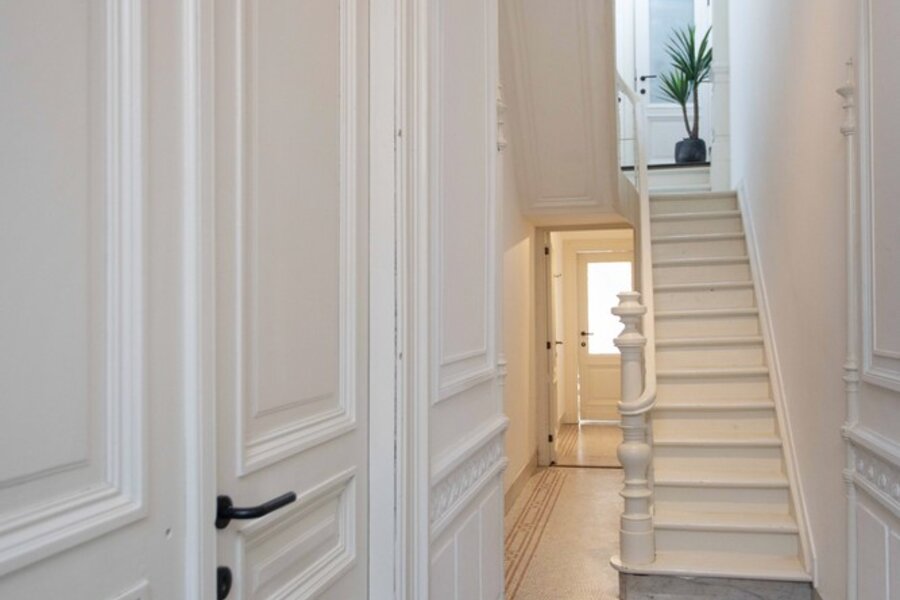 Imagine this: summer in Antwerp. Thursday, 11 a.m. You return home from the market at Dageraadplaats, your hands full of what will soon become a lovely dinner. You open the green front door, step onto the beautiful mosaic floor, and walk through the hallway with elegant mouldings straight into the kitchen. The double doors to the garden (64 m²) open immediately: fresh air flows in, and the city suddenly feels far away.