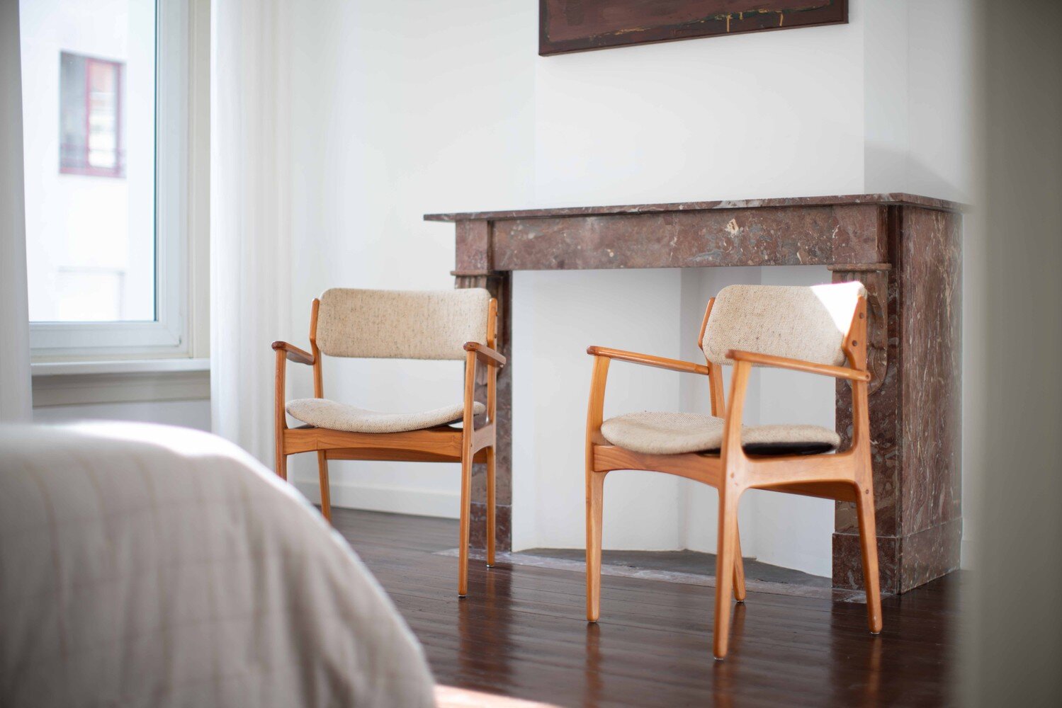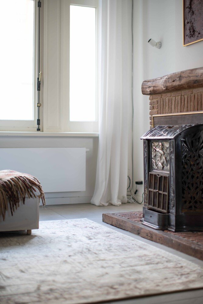 The younger crowd rushes upstairs to the top floor, where there’s space to relax, play games, or simply unwind. Upstairs, the house offers four spacious bedrooms, each with an authentic marble fireplace. In the morning, you wake up here with the sun. You can feel that generations have lived, slept, and dreamed here before.