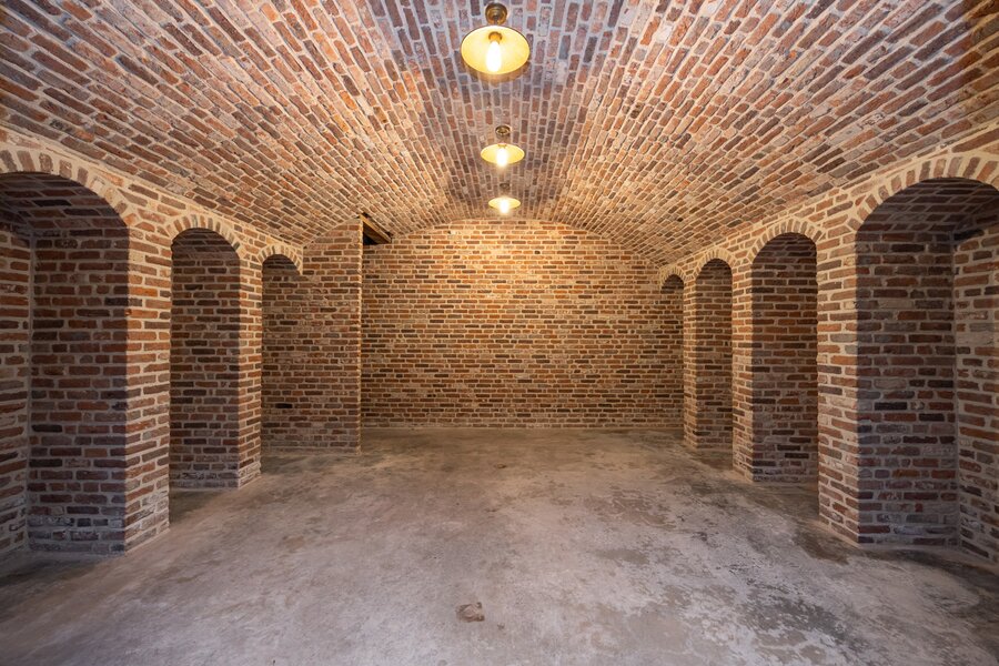 De kelder van maar liefst 326 m² is een paradijs voor elke auto -en/of wijnliefhebber. Hier vinden we een authentiek gemetste wijnkelder van 25 m², een opslagruimte met ingemaakte kasten, een werkplaats van 34 m² met krachtstroom en een ondergrondse garage van 244 m² met plaats voor maar liefst zeven wagens.