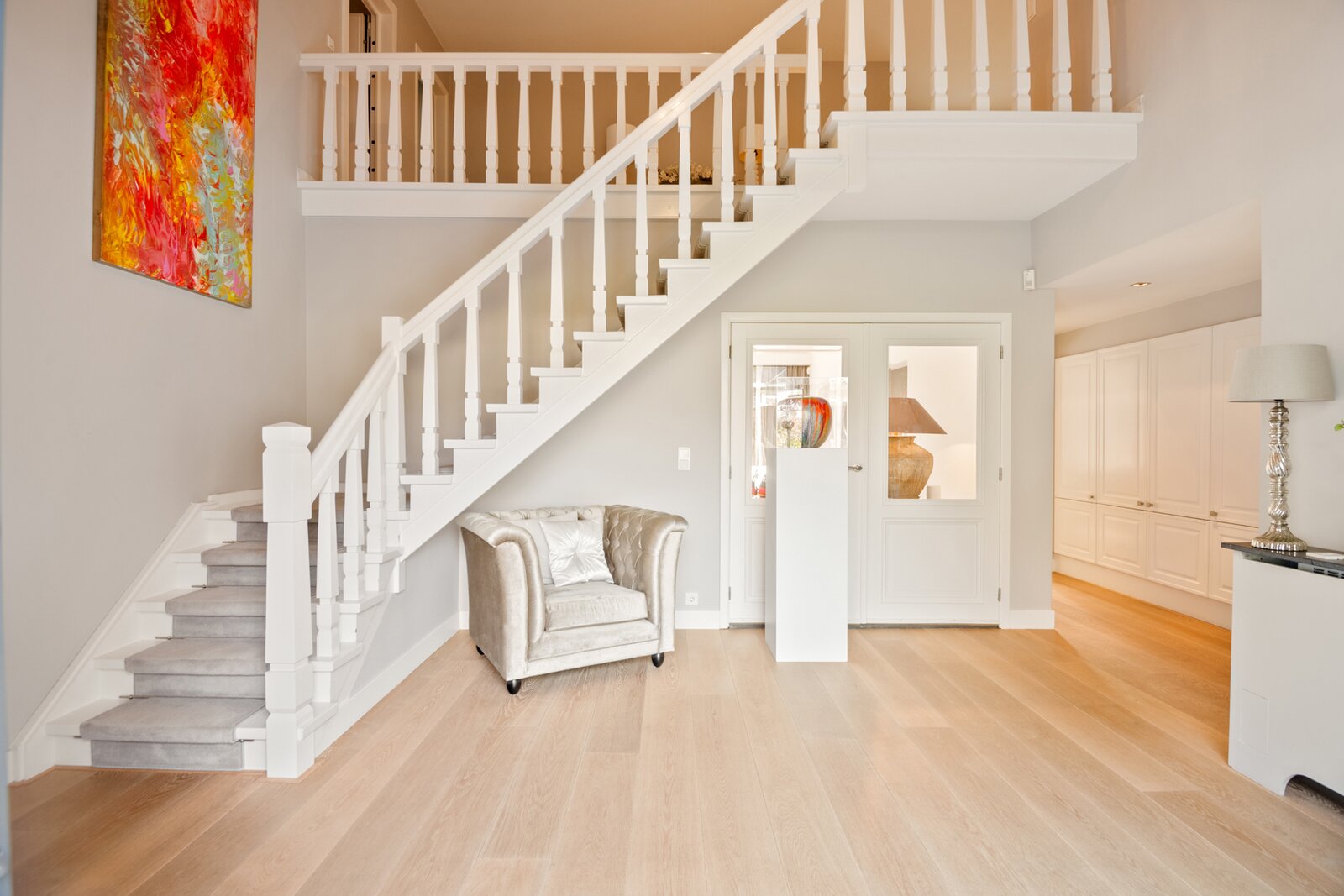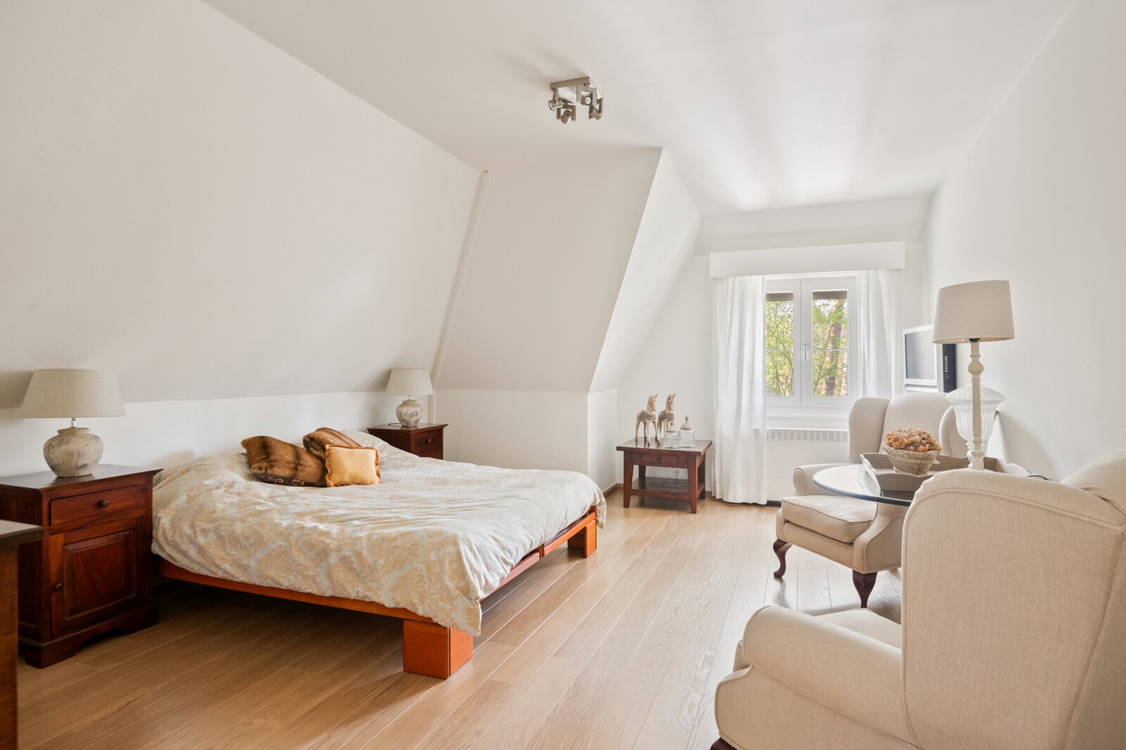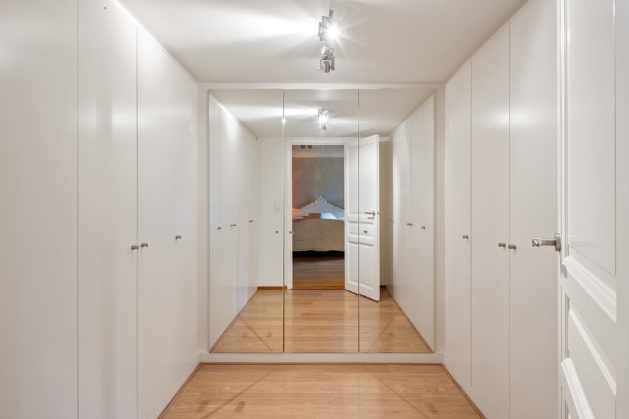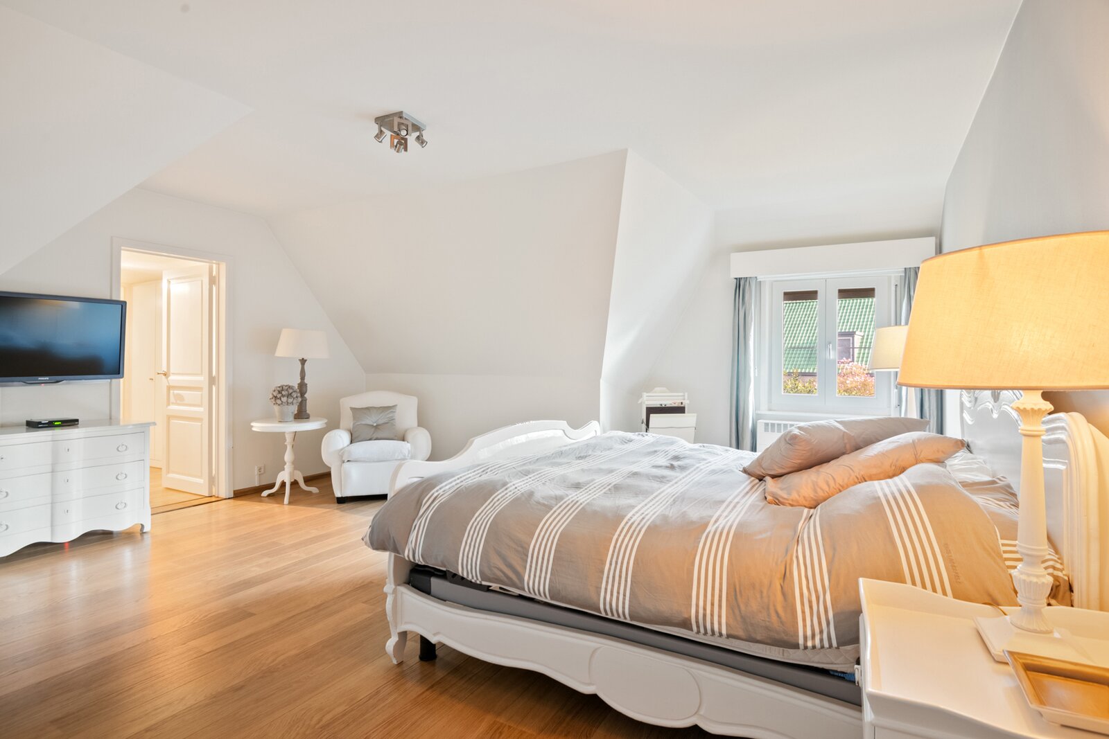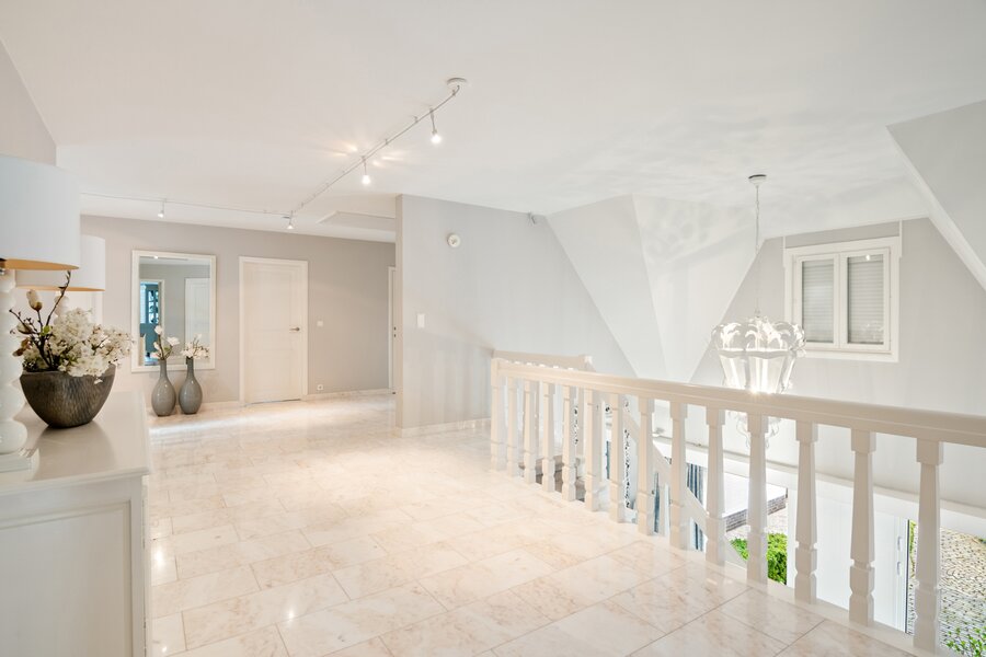 Op de eerste verdieping geeft de zeer ruime overloop uit op de hoofdslaapkamer met dressing.