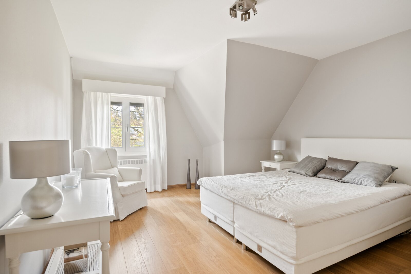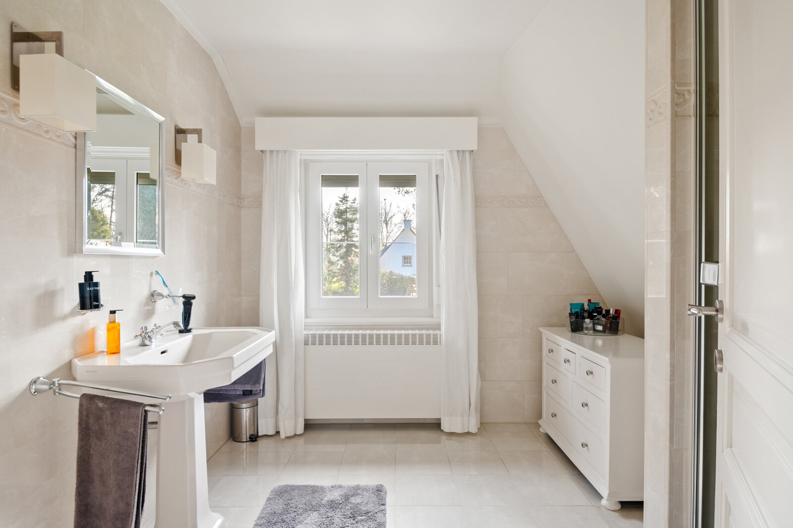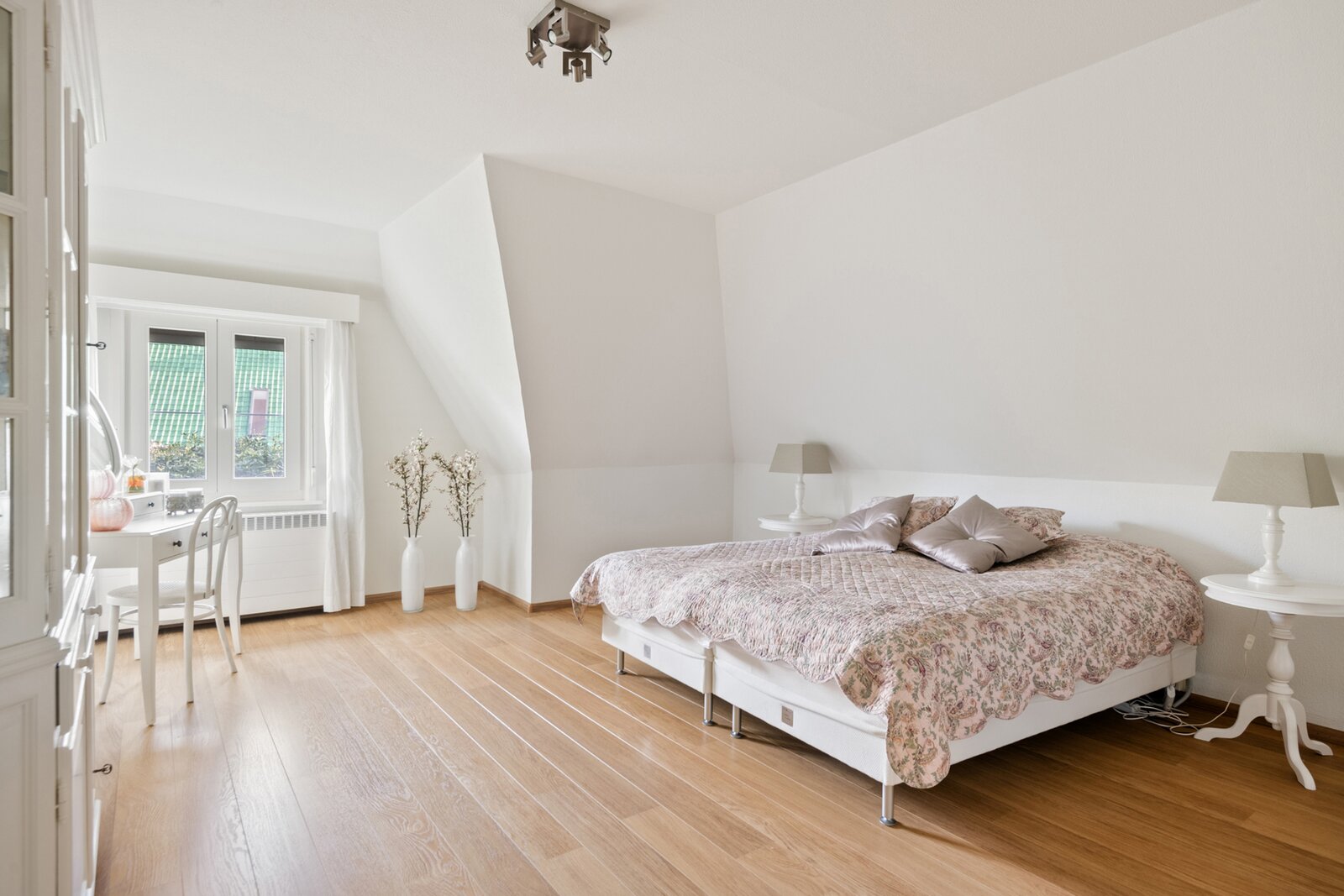 Op de eerste verdieping geeft de zeer ruime overloop uit op de hoofdslaapkamer met dressing.