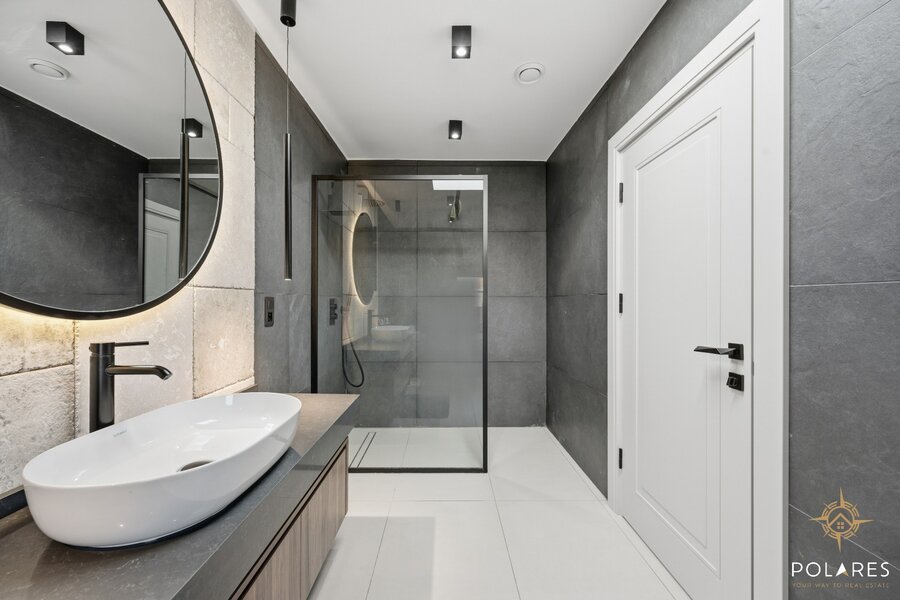 Al van bij het binnenkomen, ervaart u een interieur van topniveau, waar elk detail met zorg werd uitgewerkt. Maatwerk vormt de rode draad doorheen de woning, met stijlvolle ingebouwde kasten, duurzame en kwalitatieve materialen en een perfect evenwicht tussen esthetiek en functionaliteit.