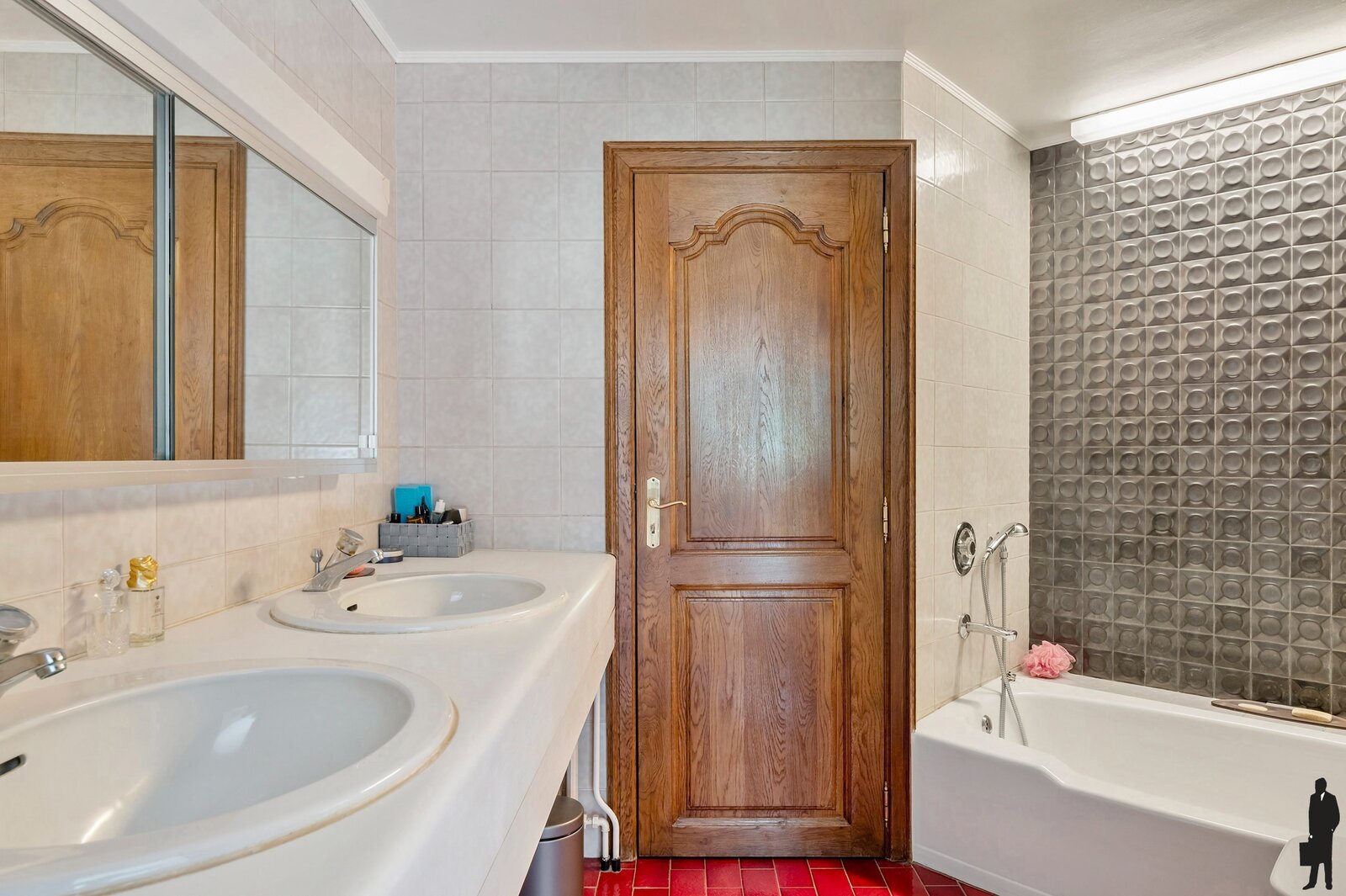 - Een aangrenzende badkamer met ligbad, toilet, bidet en dubbele lavabo