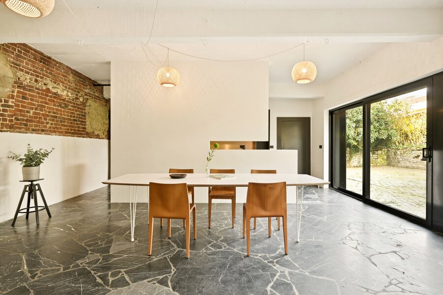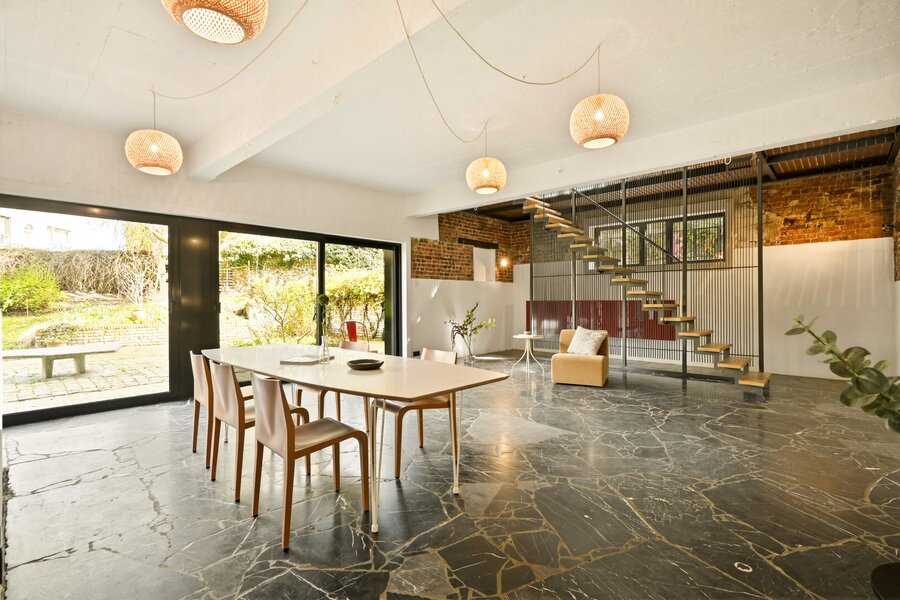 On the garden level, you’ll find the kitchen-diner and central living room. From here, you can step straight out onto your XL private terrace and continue straight into the large, shared and well-maintained garden. Also on this floor: entrance hall, cloakroom, toilet and storage room. Spacious, shared basement on -1. At street level, you’ll find the master bedroom with en-suite bathroom, a second, spacious bedroom and the pièce de résistance of this property: the 84 m² multi-purpose space. Your own address? Separate entrance? Belgian marble flooring and underfloor heating? Check, check, check! For anyone dreaming of a (group) practice, studio, gallery or workshop space, this might just be the place. On the first floor, you’ll find even more bedrooms, and the top floor boasts a further three bedrooms with fitted wardrobes, a second bathroom and handy storage space.