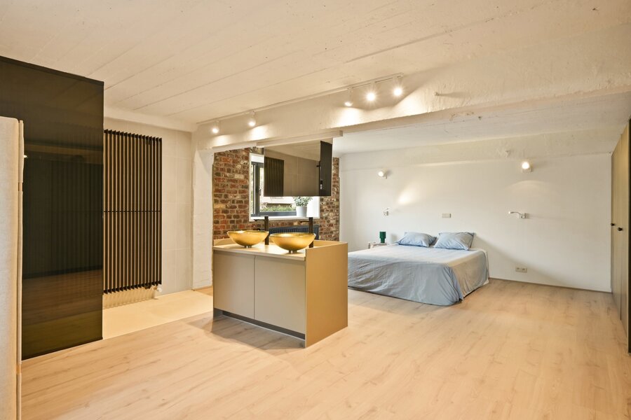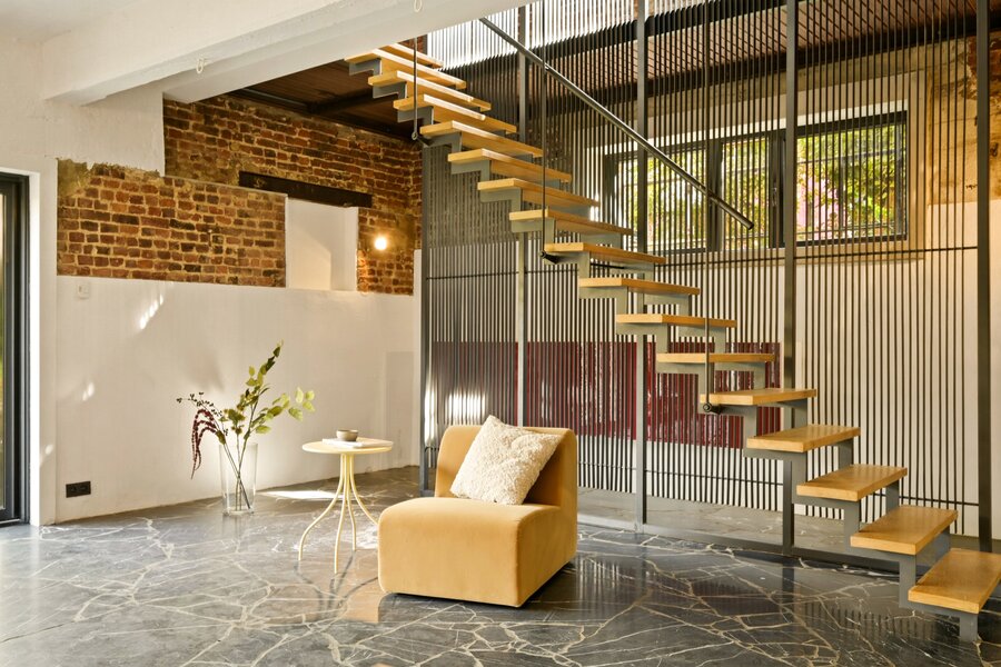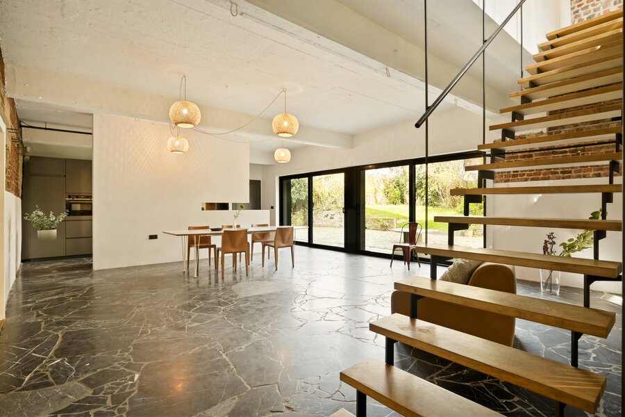 You really have to see this triplex flat in a former brewery to believe it, as it offers no less than 500 m² of flexible living space spread over three floors. It’s also on a small scale, as there are only three other flats in this fully renovated building.